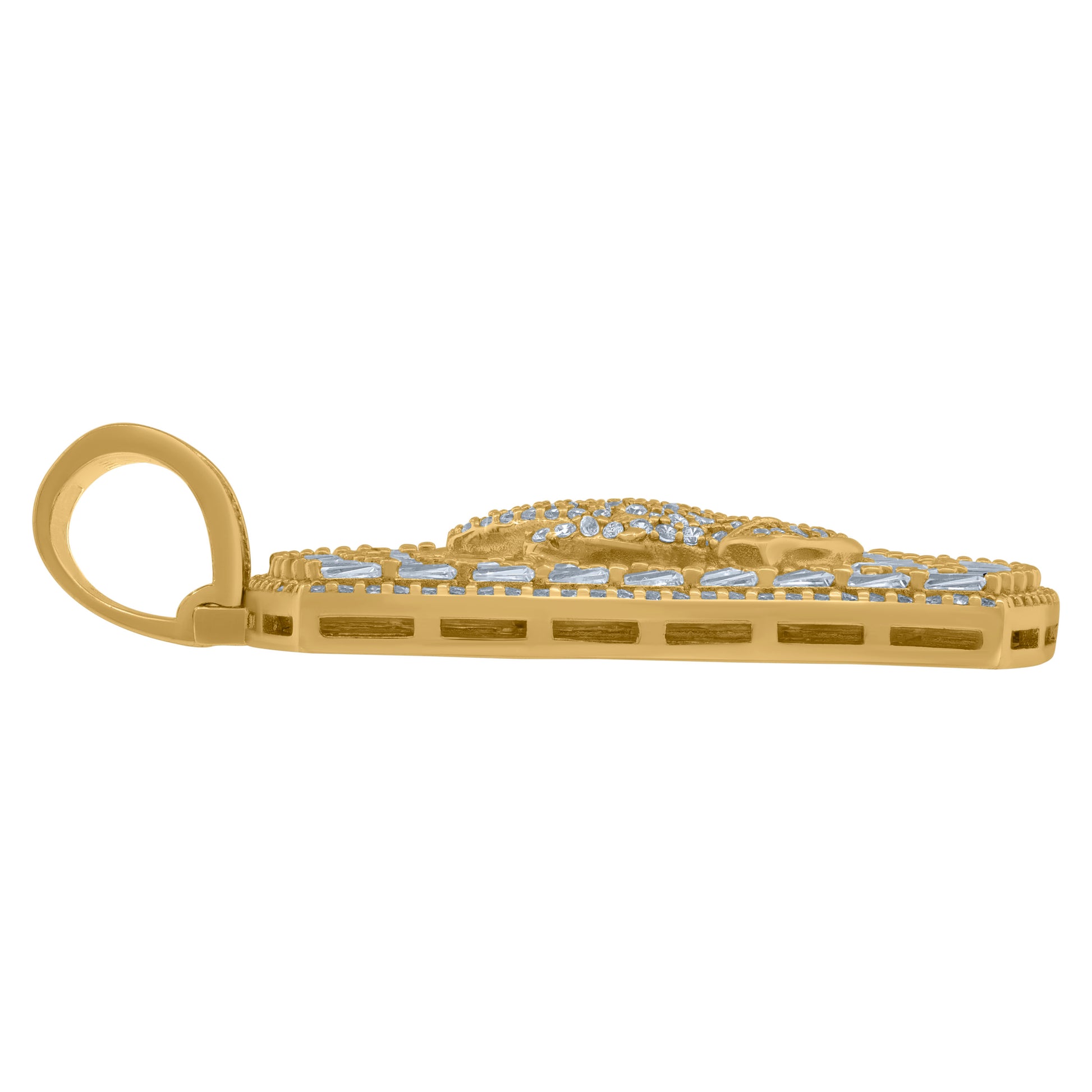925 Sterling Silver Yellow-Tone Mens Round Baguette Cubic-Zirconia Dog Tag Praying Hands Symbol Religious Charm Pendant