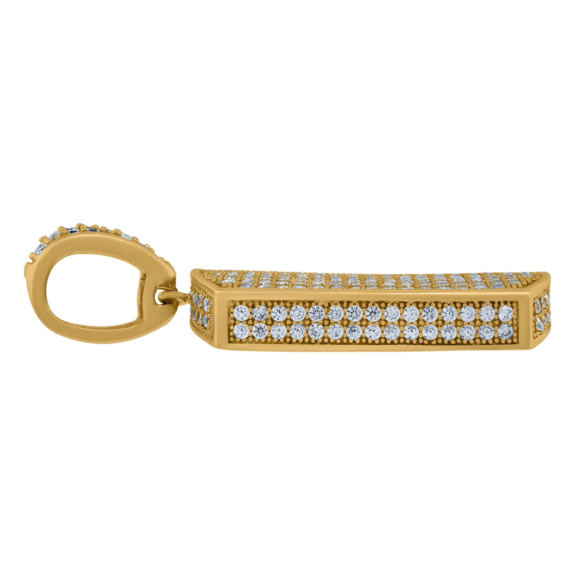 925 Sterling Silver Yellow-Tone Mens Cubic-Zirconia Dog Tag Fashion Charm Pendant