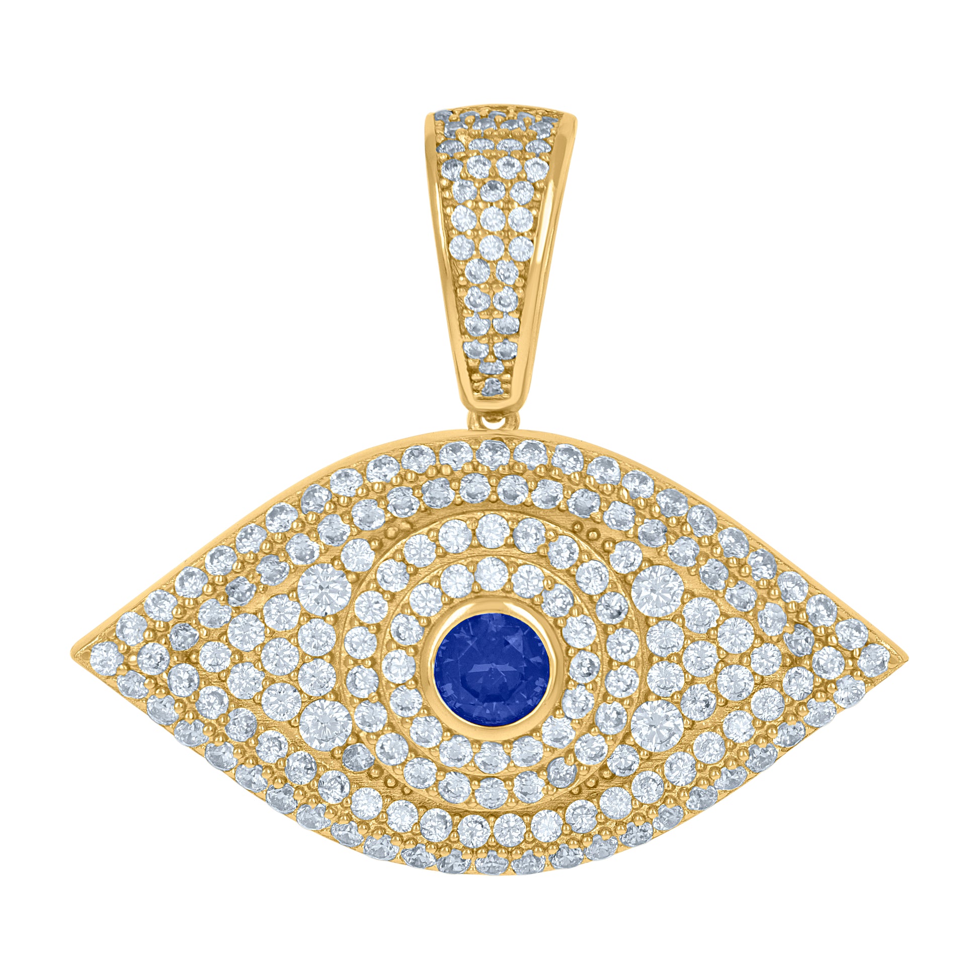 925 Sterling Silver Yellow-Tone Mens Blue Cubic-Zirconia Evil Eye Symbol Good Luck Charm Pendant
