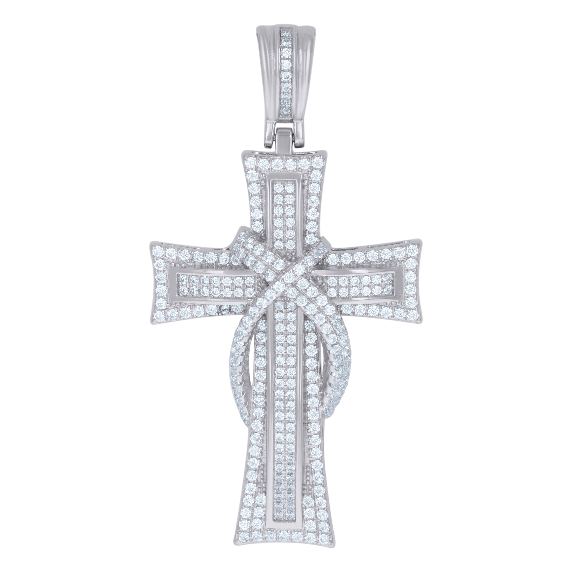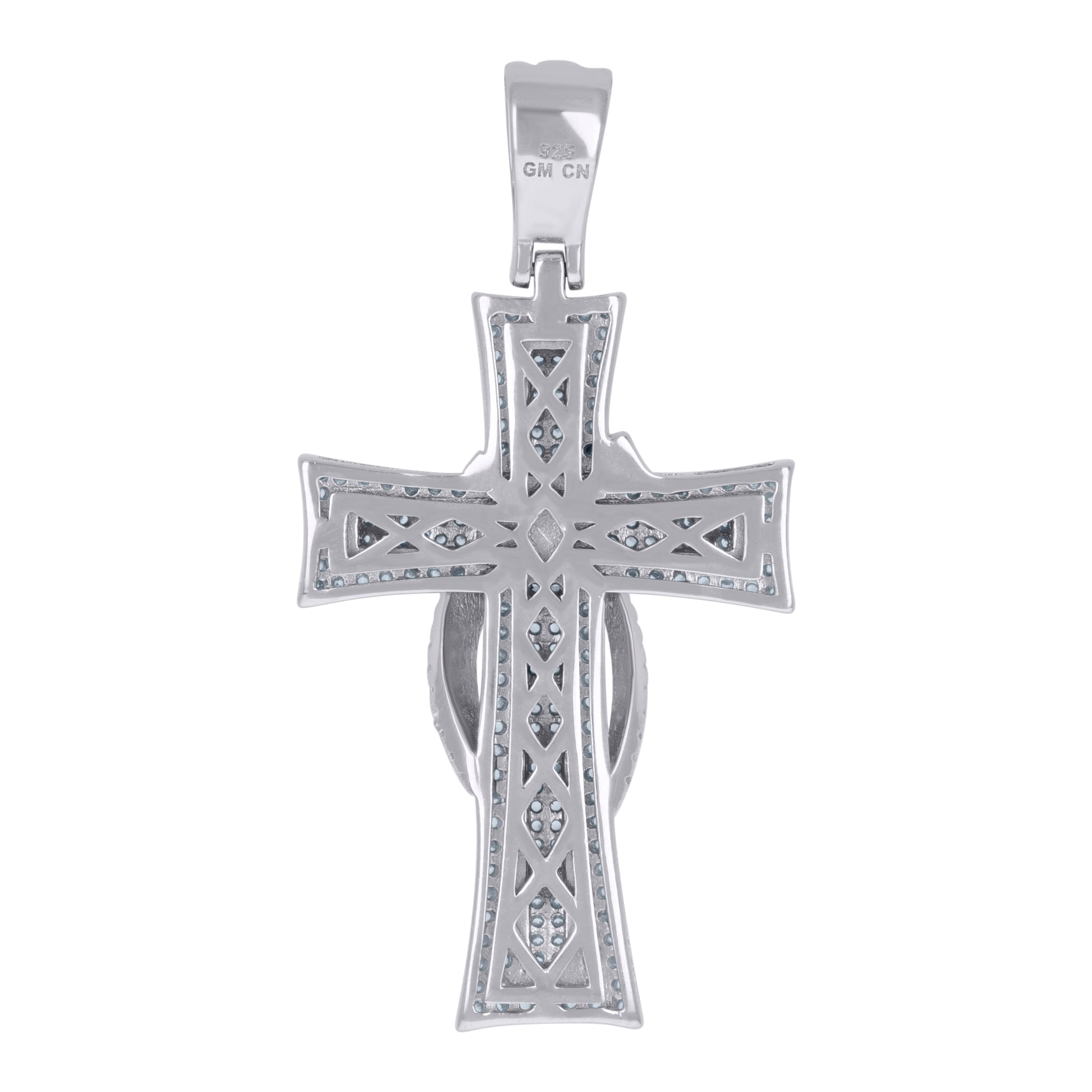925 Sterling Silver Mens Cubic-Zirconia Cross Religious Charm Pendant