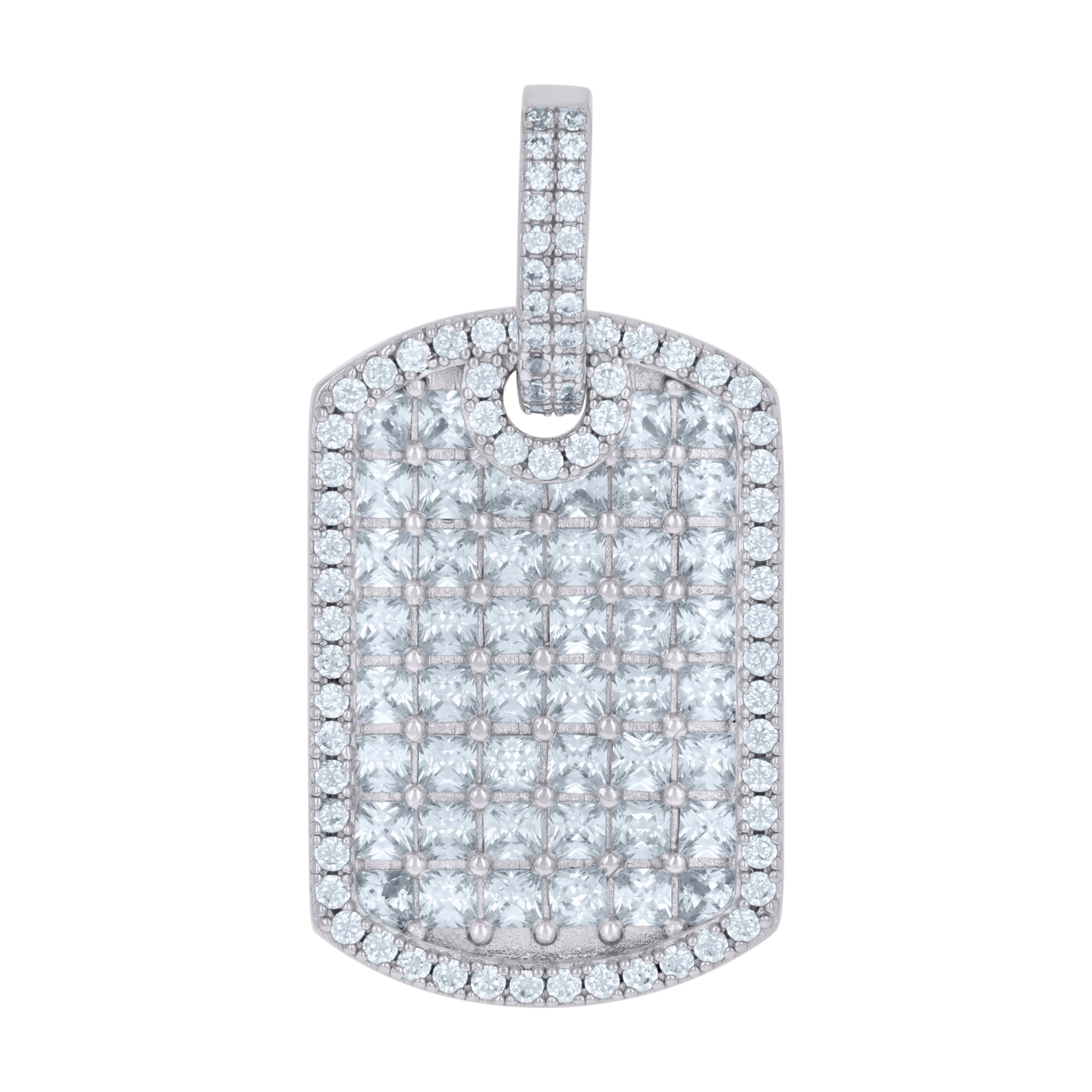 925 Sterling Silver Mens Round & Princess-Cut Cubic-Zirconia Dog Tag Fashion Charm Pendant