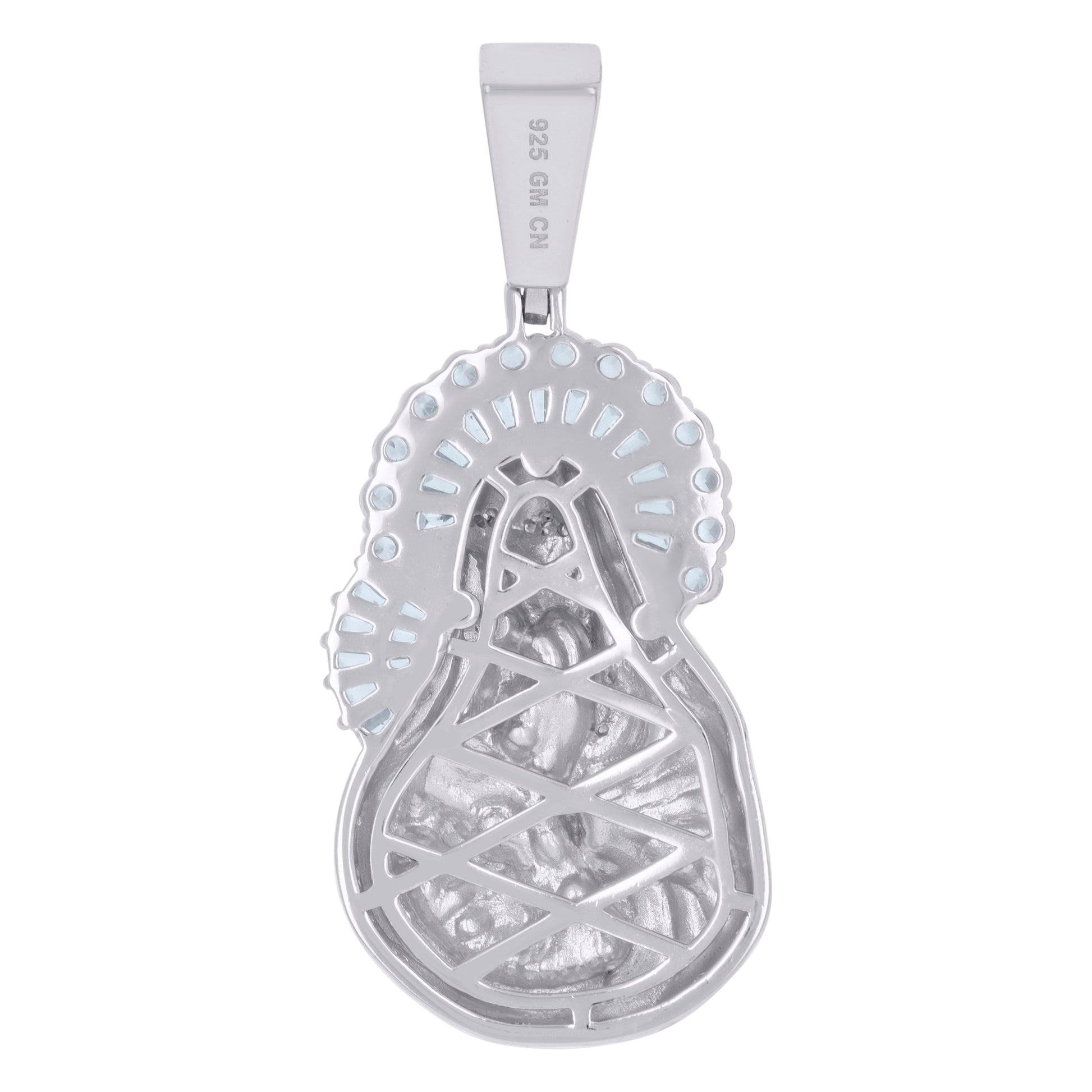 925 Sterling Silver Mens Round & Baguette Cubic-Zirconia Mother Marry Religious Charm Pendant