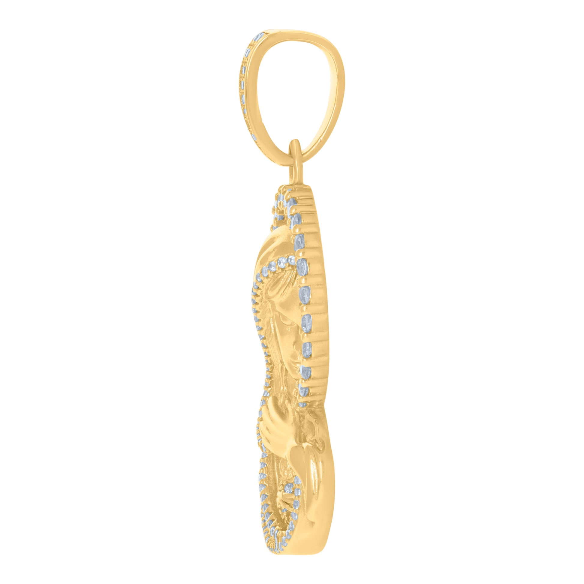 925 Sterling Silver Yellow-Tone Mens Cubic-Zirconia Mother Marry Religious Charm Pendant