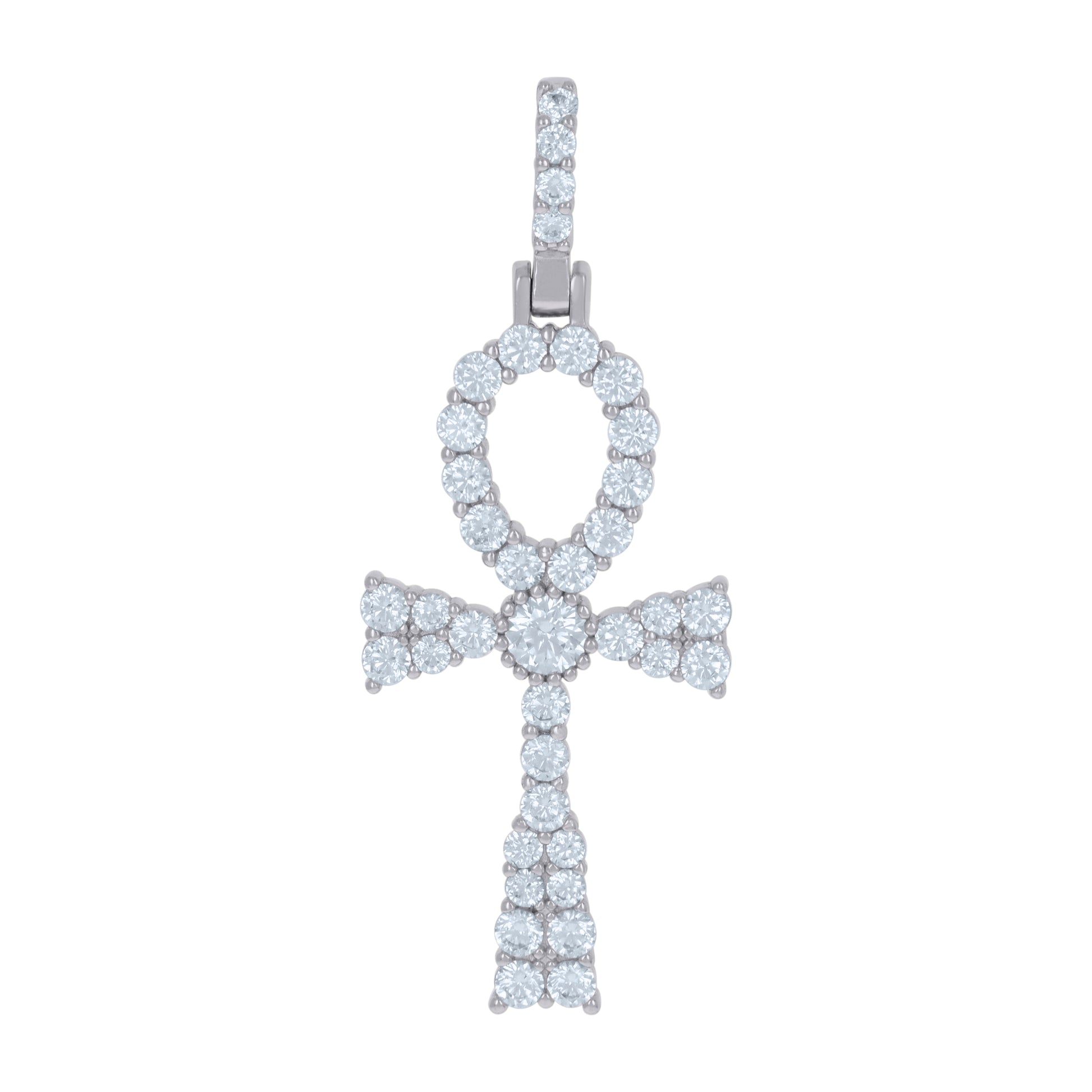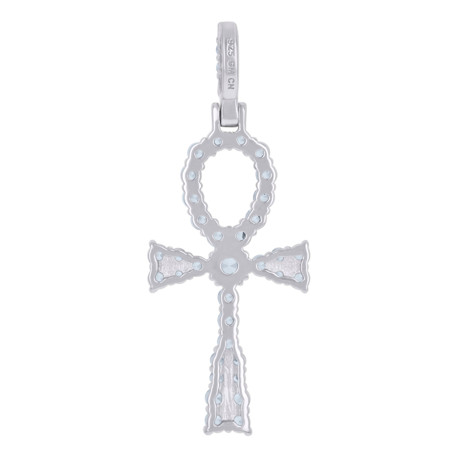 925 Sterling Silver Mens Cubic-Zirconia Egyptian Ankh Cross Religious Charm Pendant