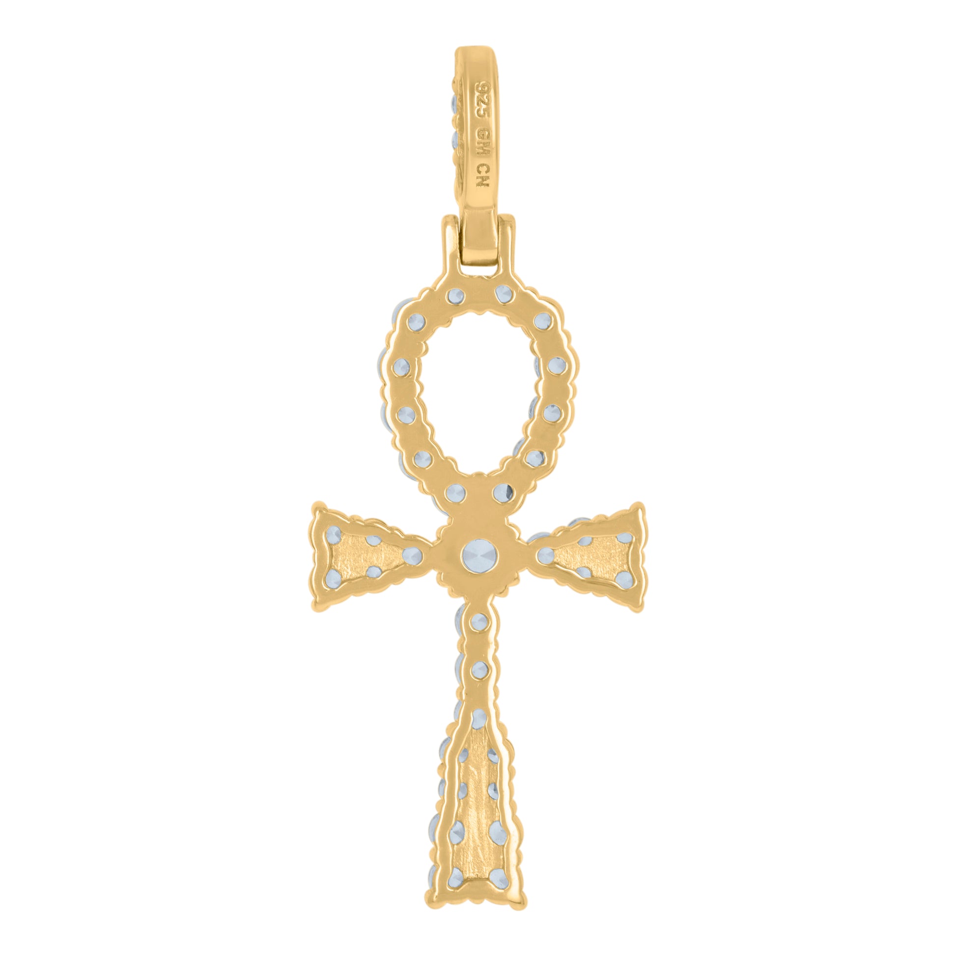 925 Sterling Silver Yellow-Tone Mens Cubic-Zirconia Egyptian Ankh Cross Religious Charm Pendant