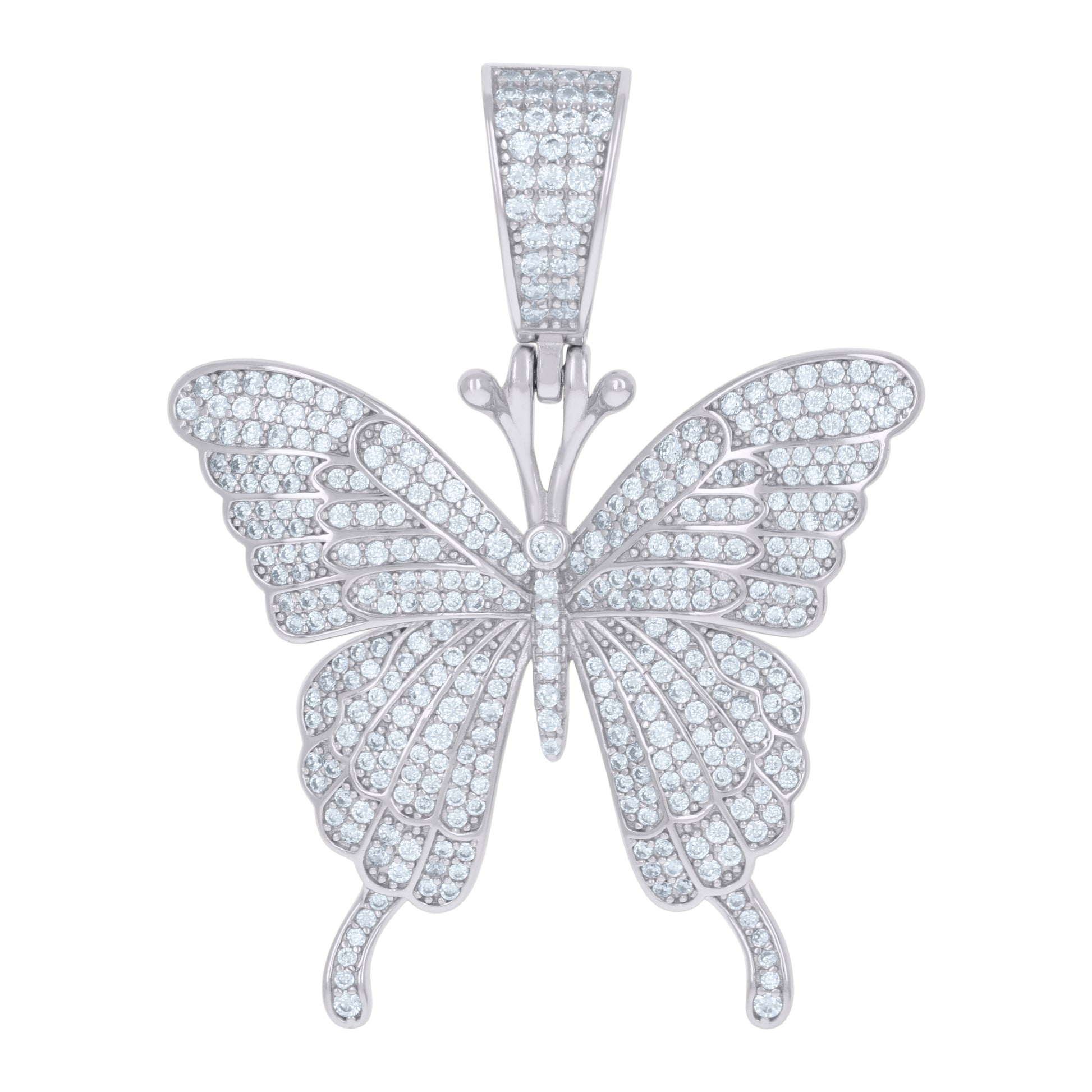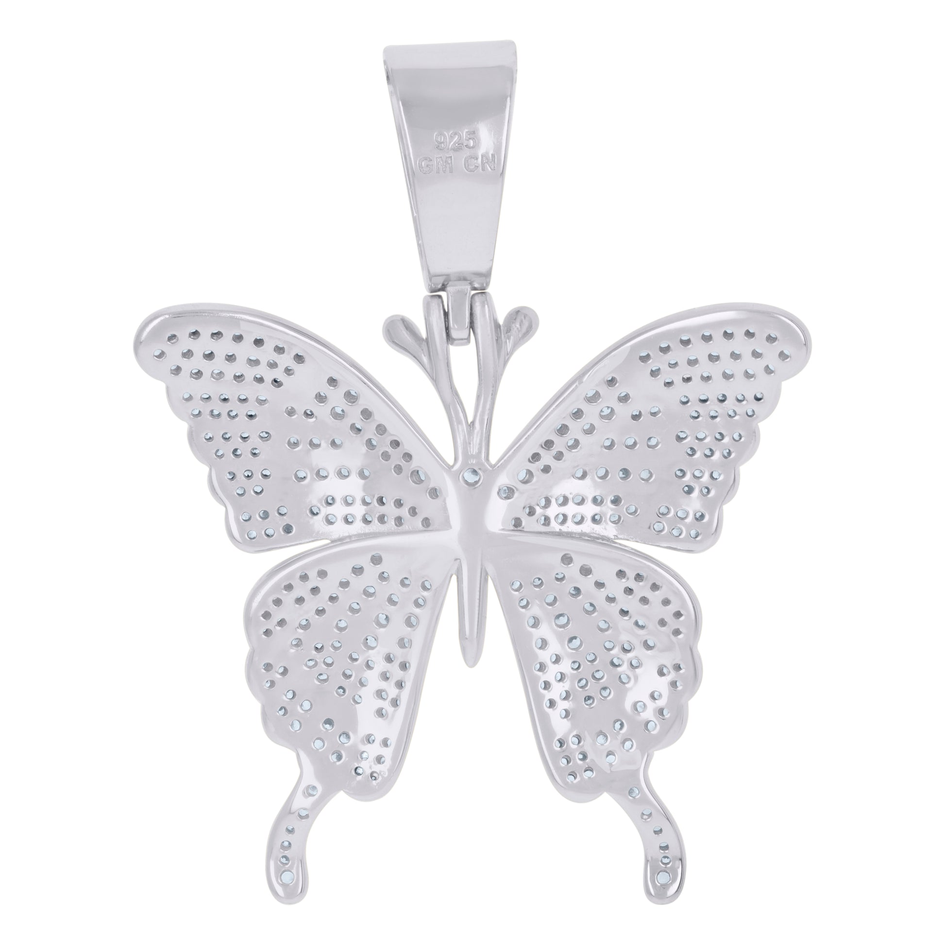 925 Sterling Silver Womens Cubic-Zirconia Butterfly Fashion Charm Pendant