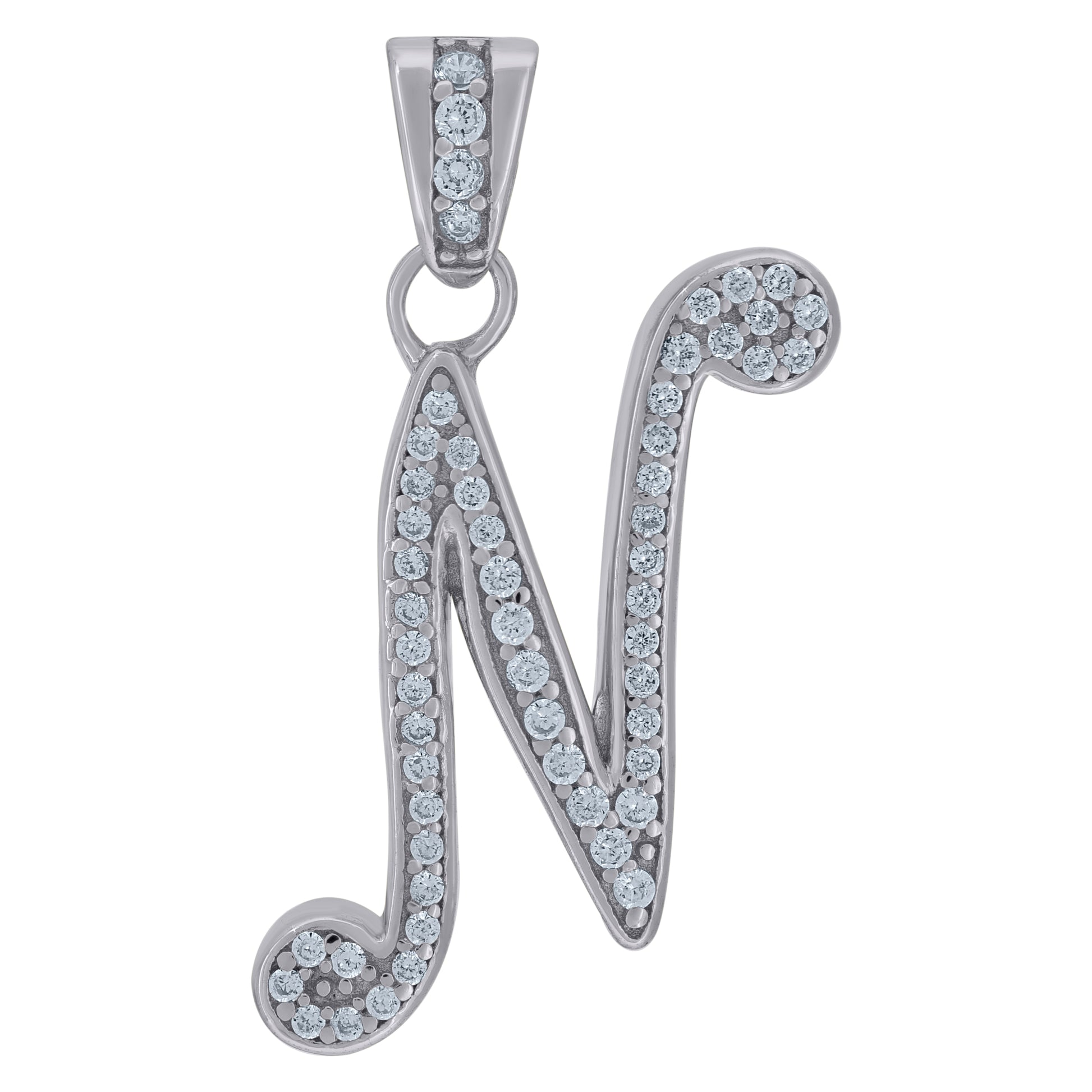 925 Sterling Silver Unisex Cubic-Zirconia Initial Alphabet N Charm Pendant
