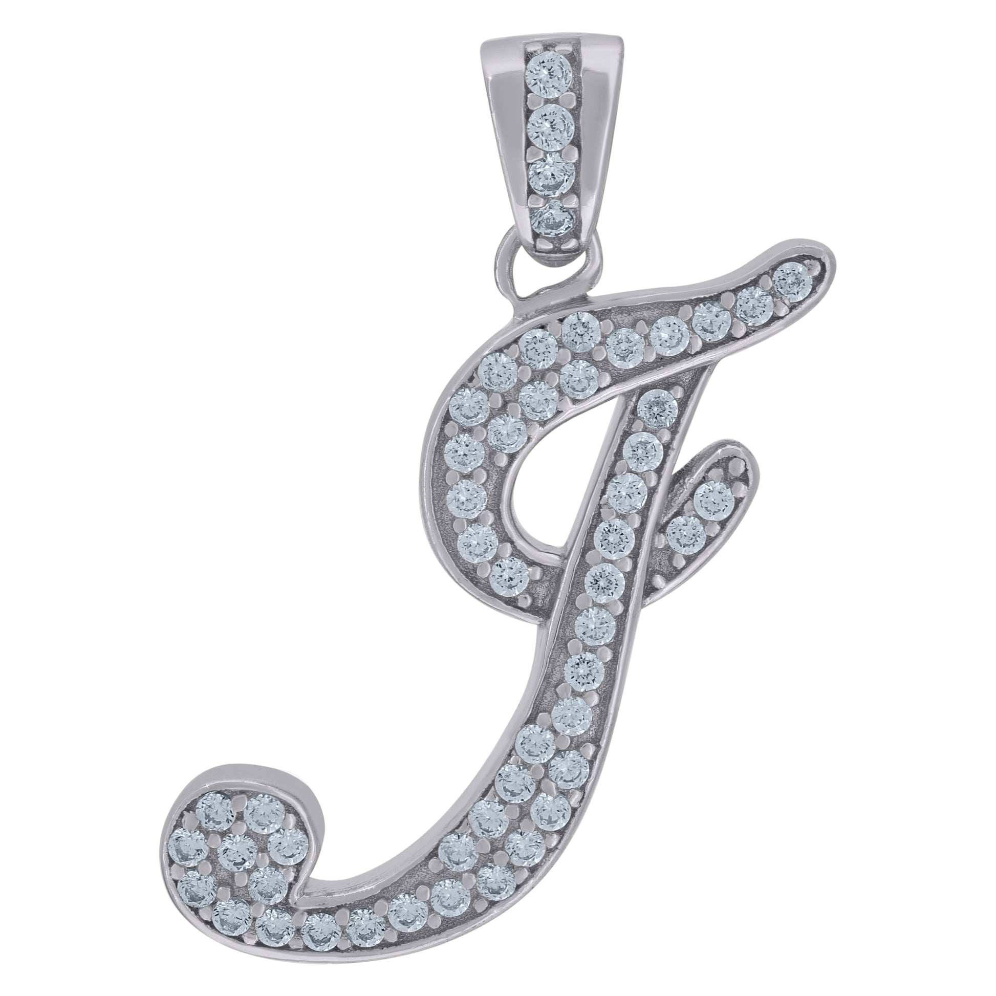 925 Sterling Silver Unisex Cubic-Zirconia Initial Alphabet I Charm Pendant