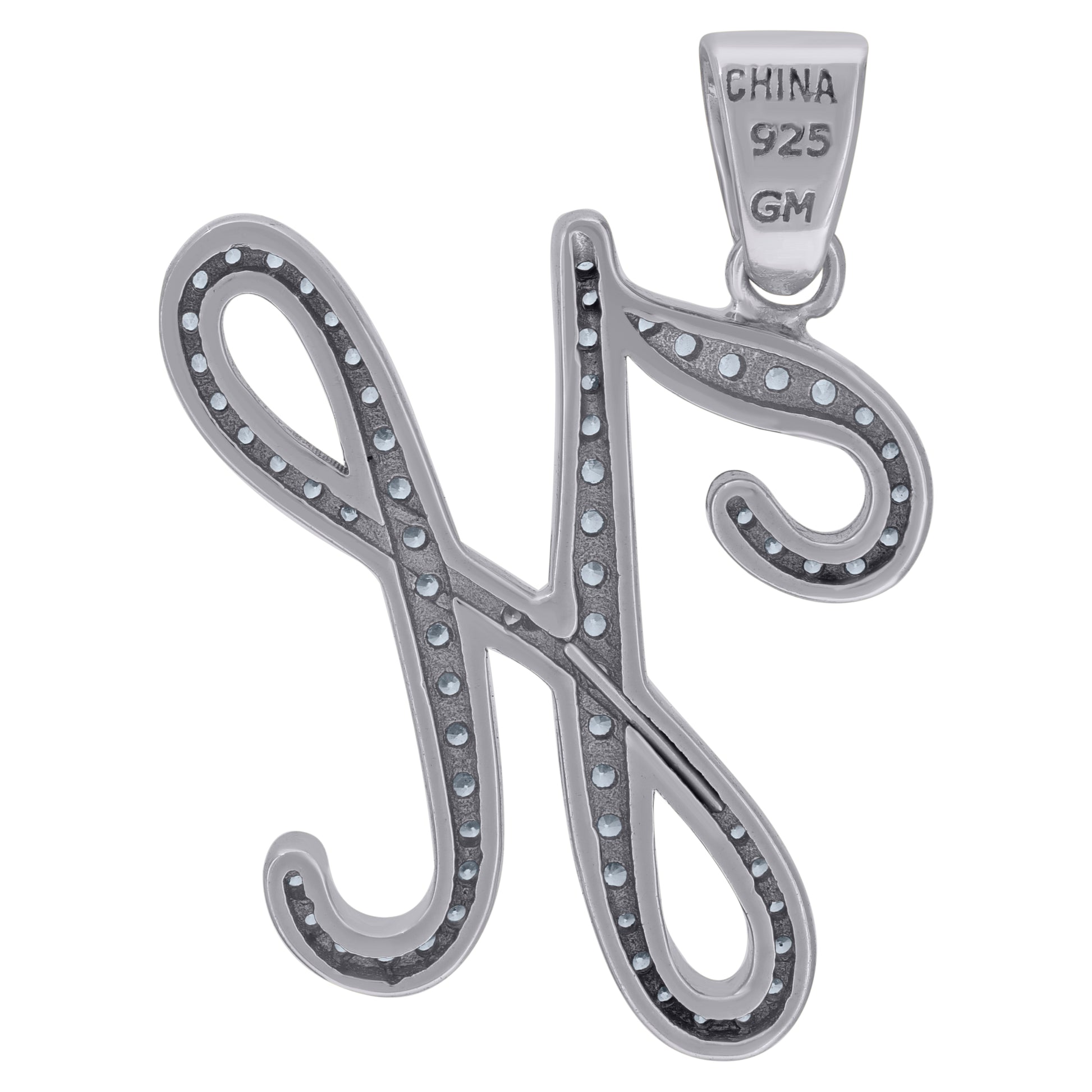 925 Sterling Silver Unisex Cubic-Zirconia Initial Alphabet H Charm Pendant