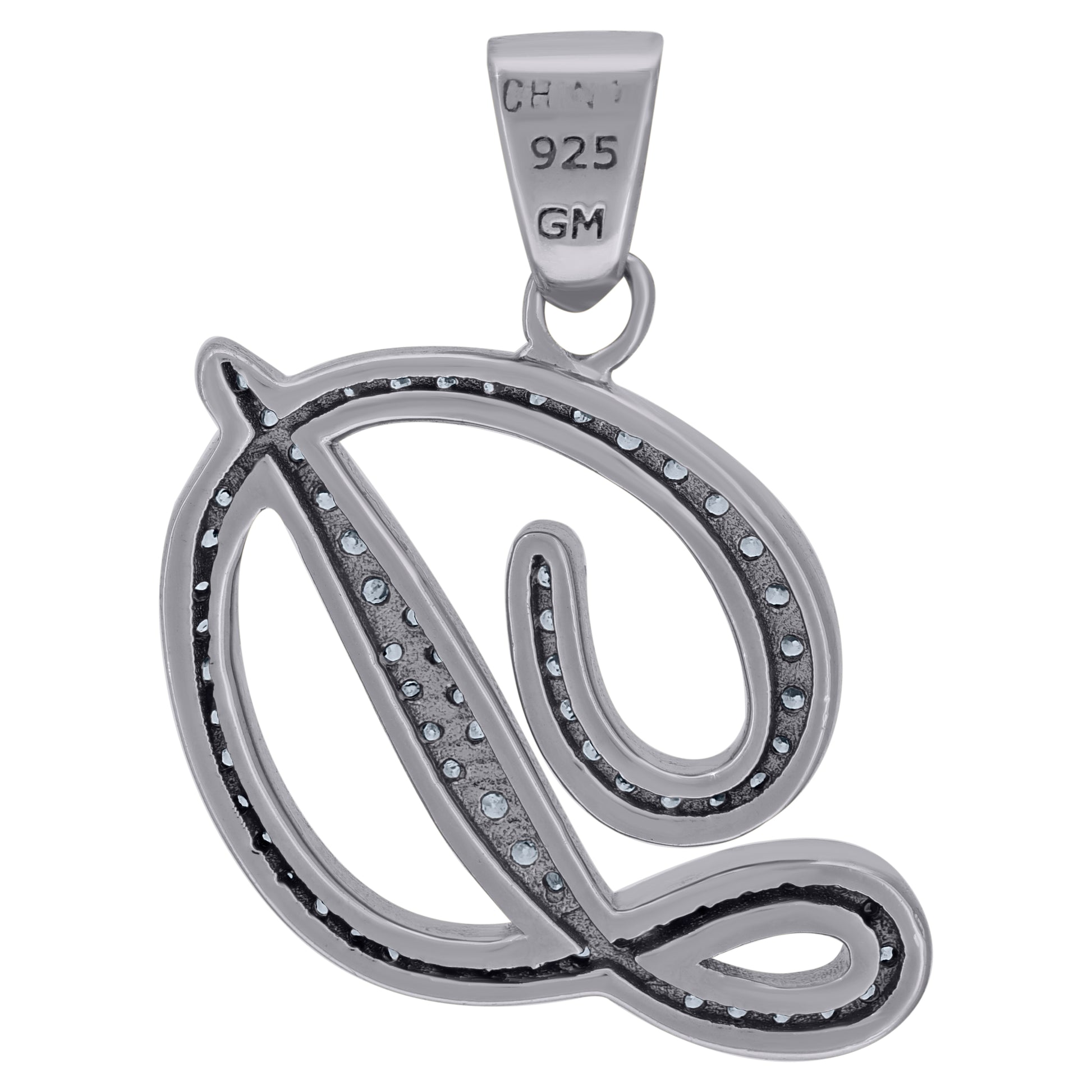 925 Sterling Silver Unisex Cubic-Zirconia Initial Alphabet D Charm Pendant