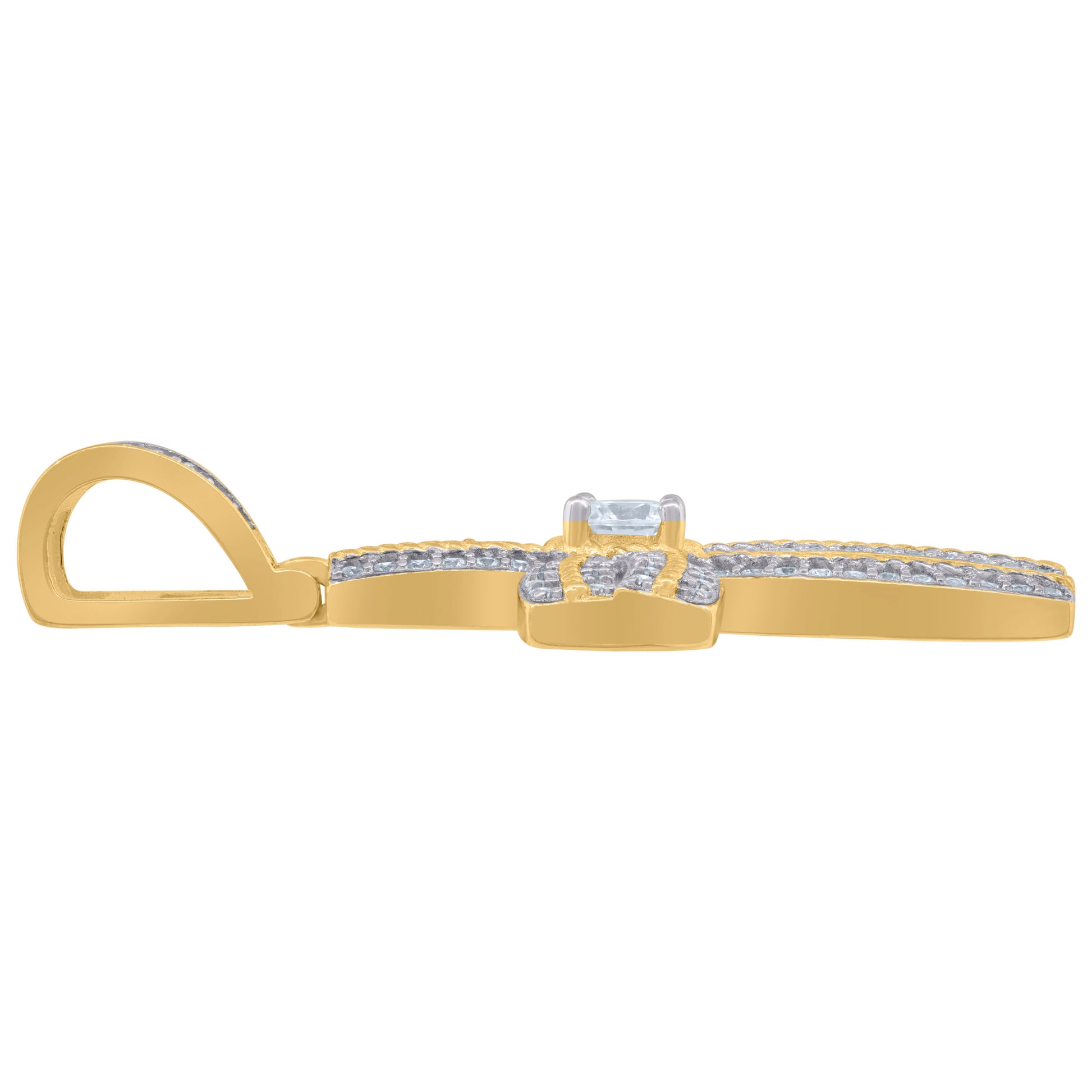 925 Sterling Silver Yellow-Tone Mens Cubic-Zirconia Cross Religious Charm Pendant
