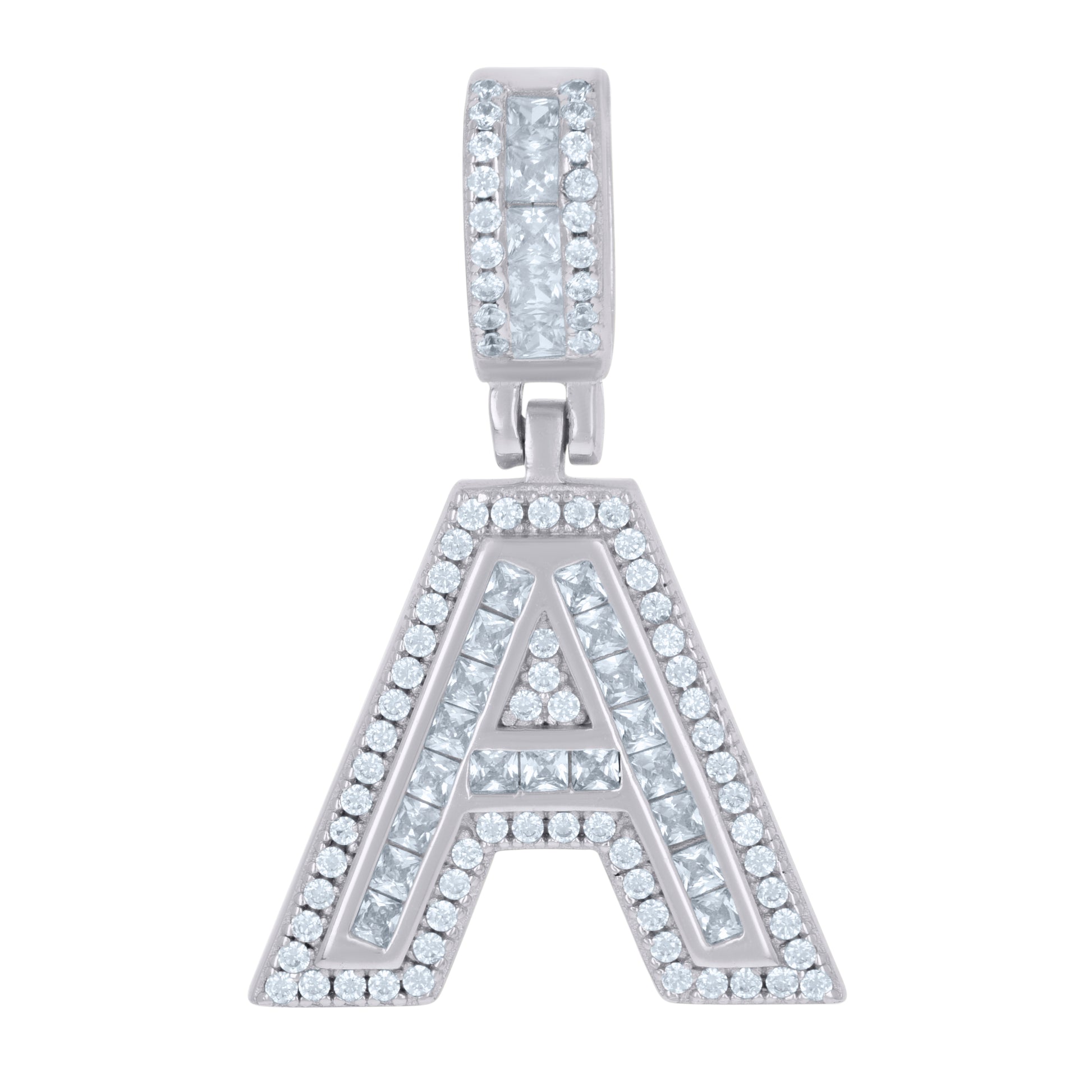 925 Sterling Silver Unisex Round & Baguette Cubic-Zirconia Initial Alphabet A Pendant Charm