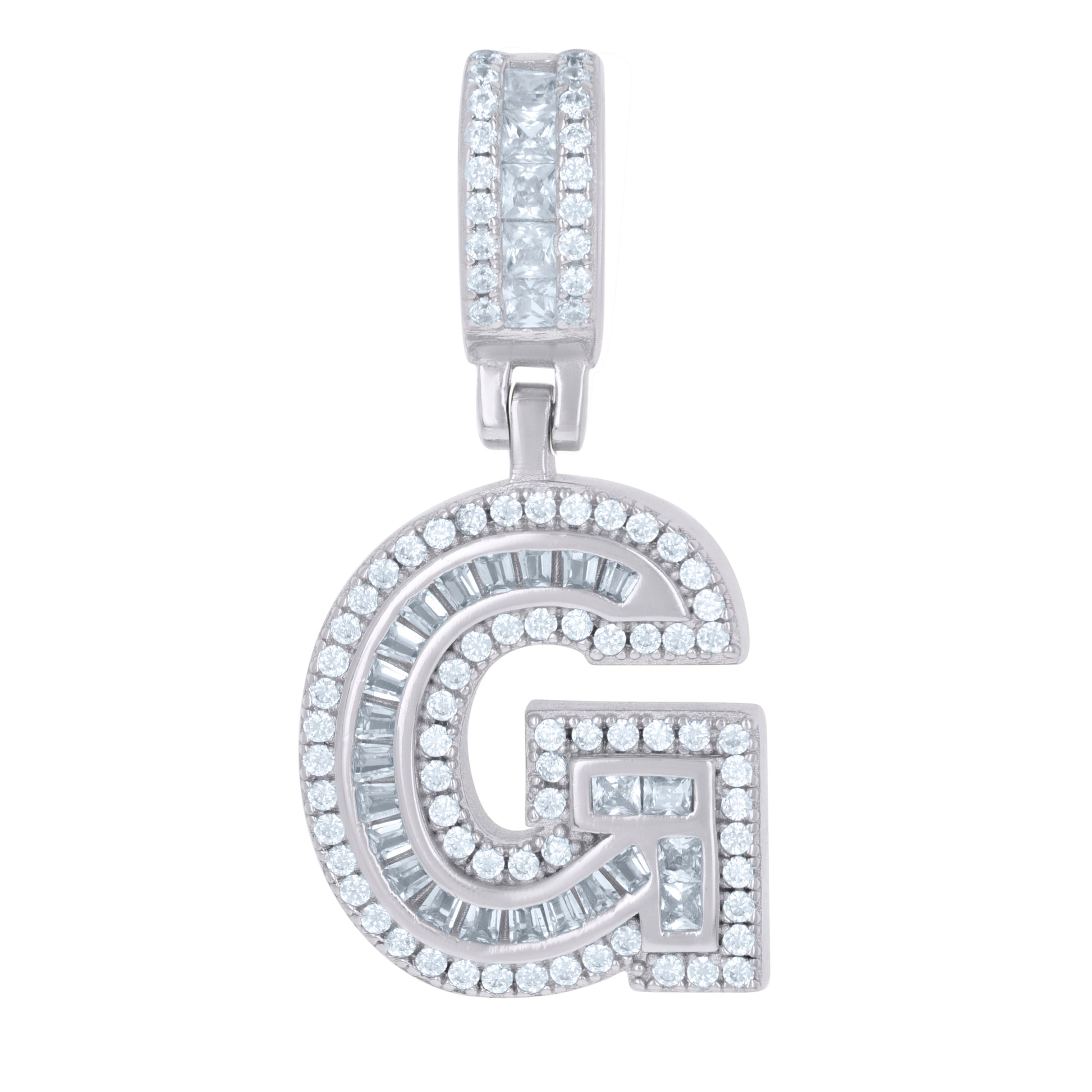925 Sterling Silver Unisex Round & Baguette Cubic-Zirconia Initial Alphabet G Pendant Charm