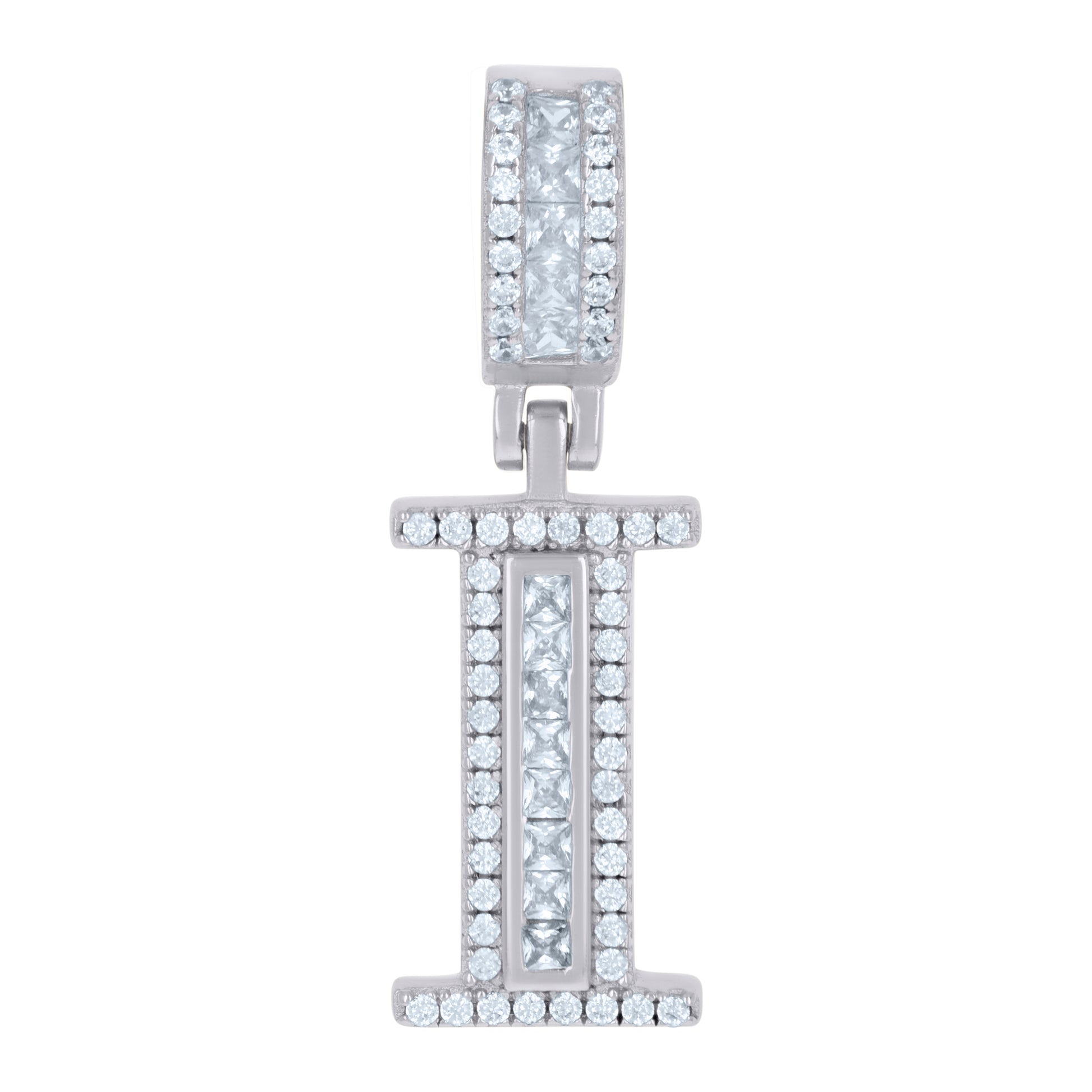 925 Sterling Silver Unisex Round & Baguette Cubic-Zirconia Initial Alphabet I Pendant Charm