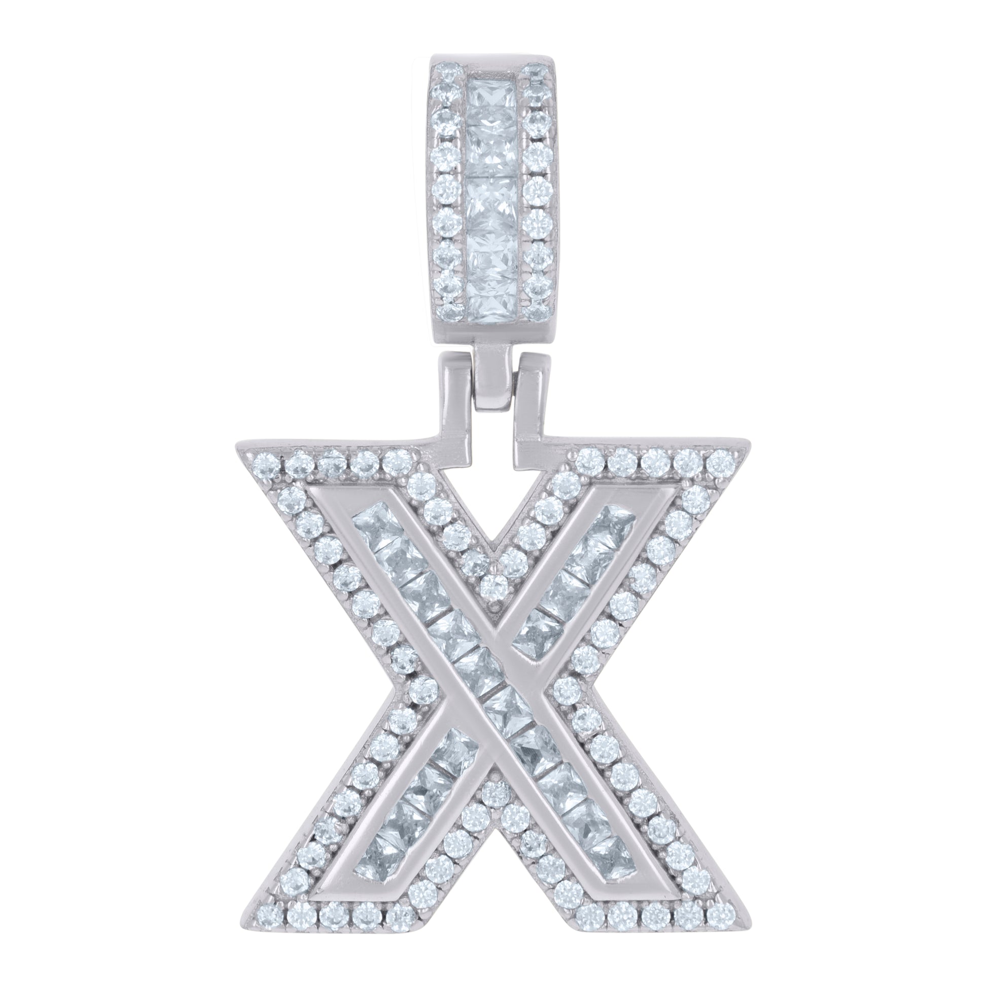 925 Sterling Silver Unisex Round & Baguette Cubic-Zirconia Initial Alphabet X Pendant Charm