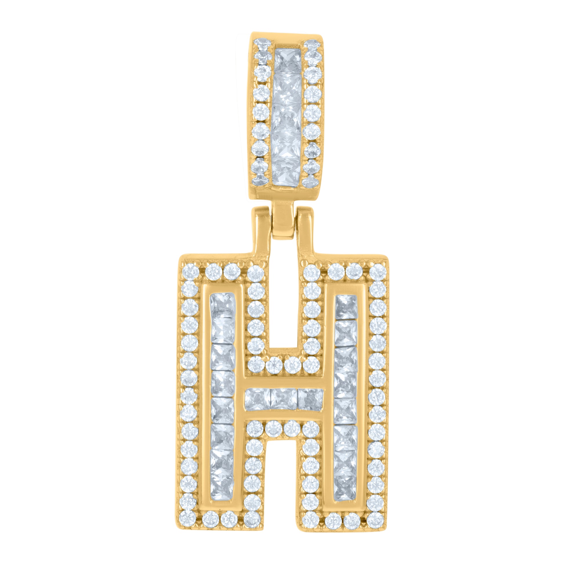 925 Sterling Silver Unisex Round & Baguette Cubic-Zirconia Initial Alphabet H Pendant Charm