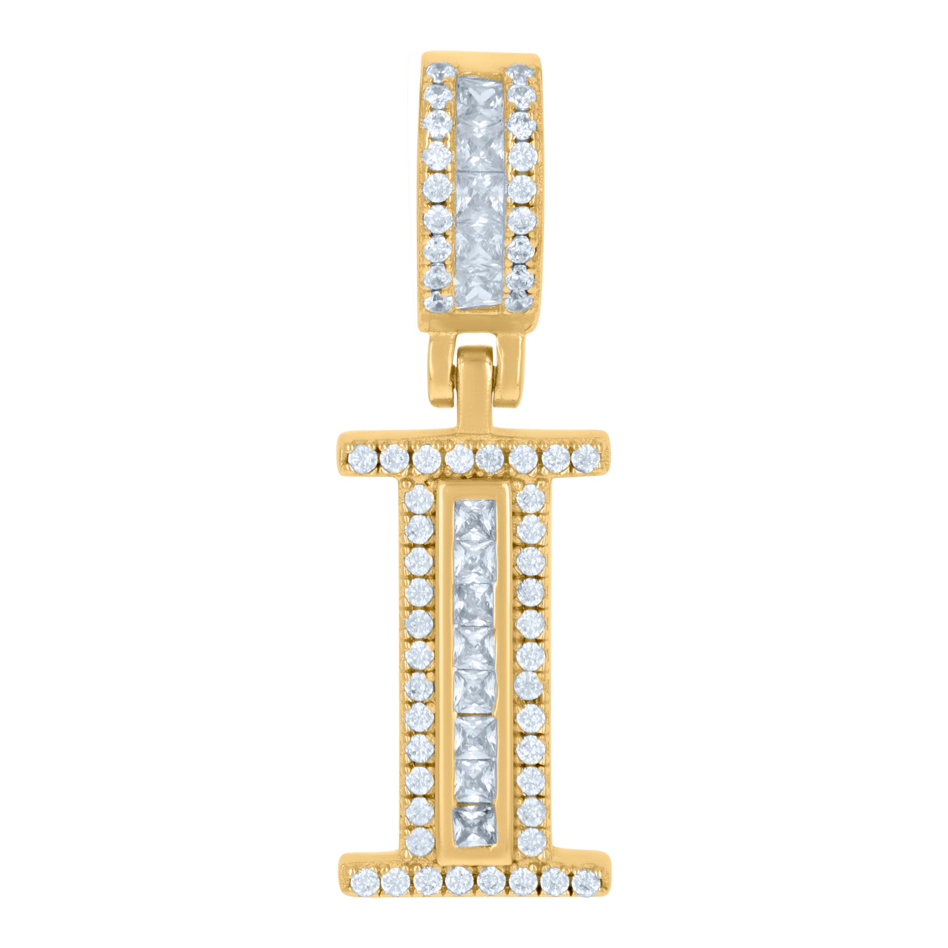925 Sterling Silver Unisex Round & Baguette Cubic-Zirconia Initial Alphabet I Pendant Charm
