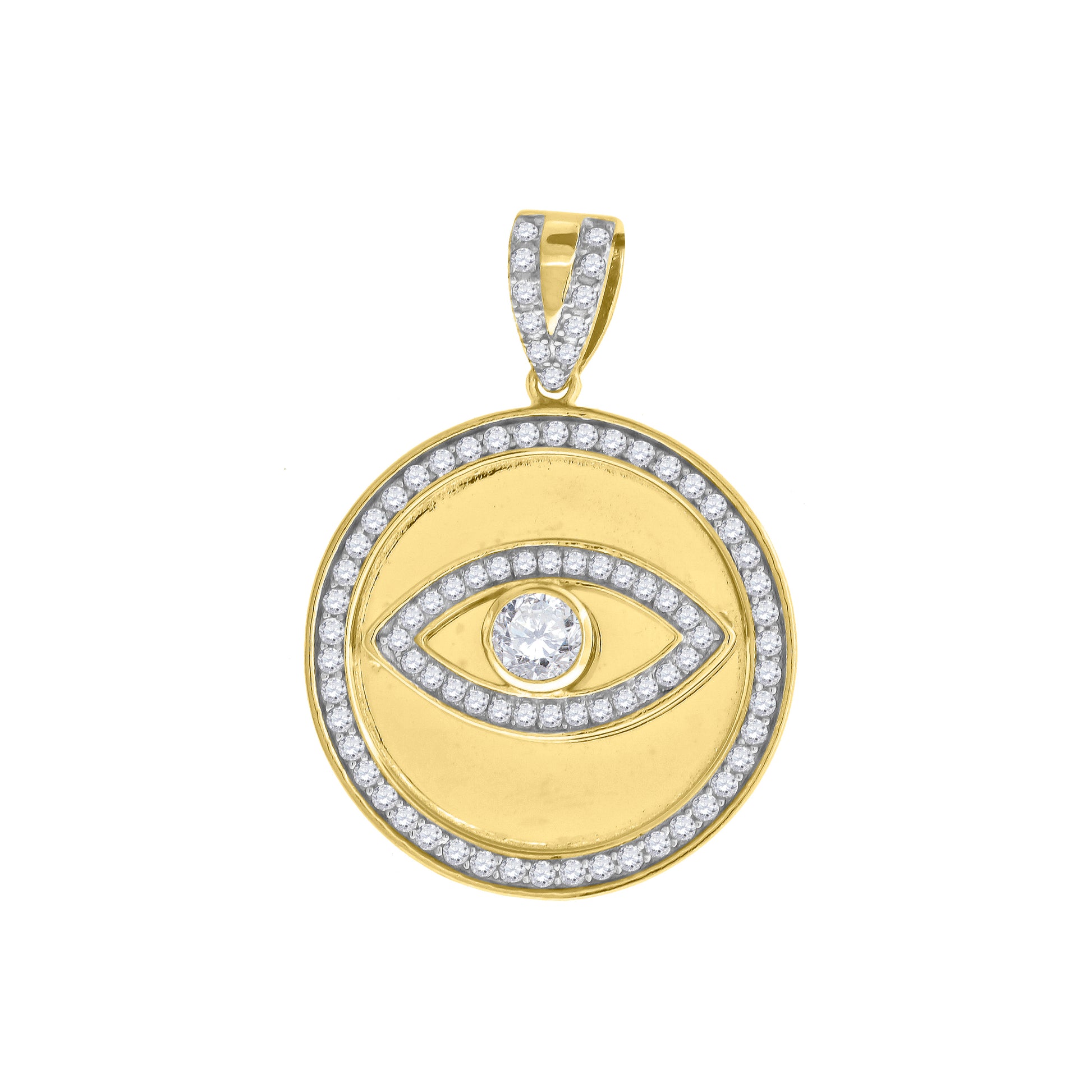 925 Sterling Silver Yellow-Tone Mens Cubic Zirconia Good Luck Evil Eye Charm Pendant