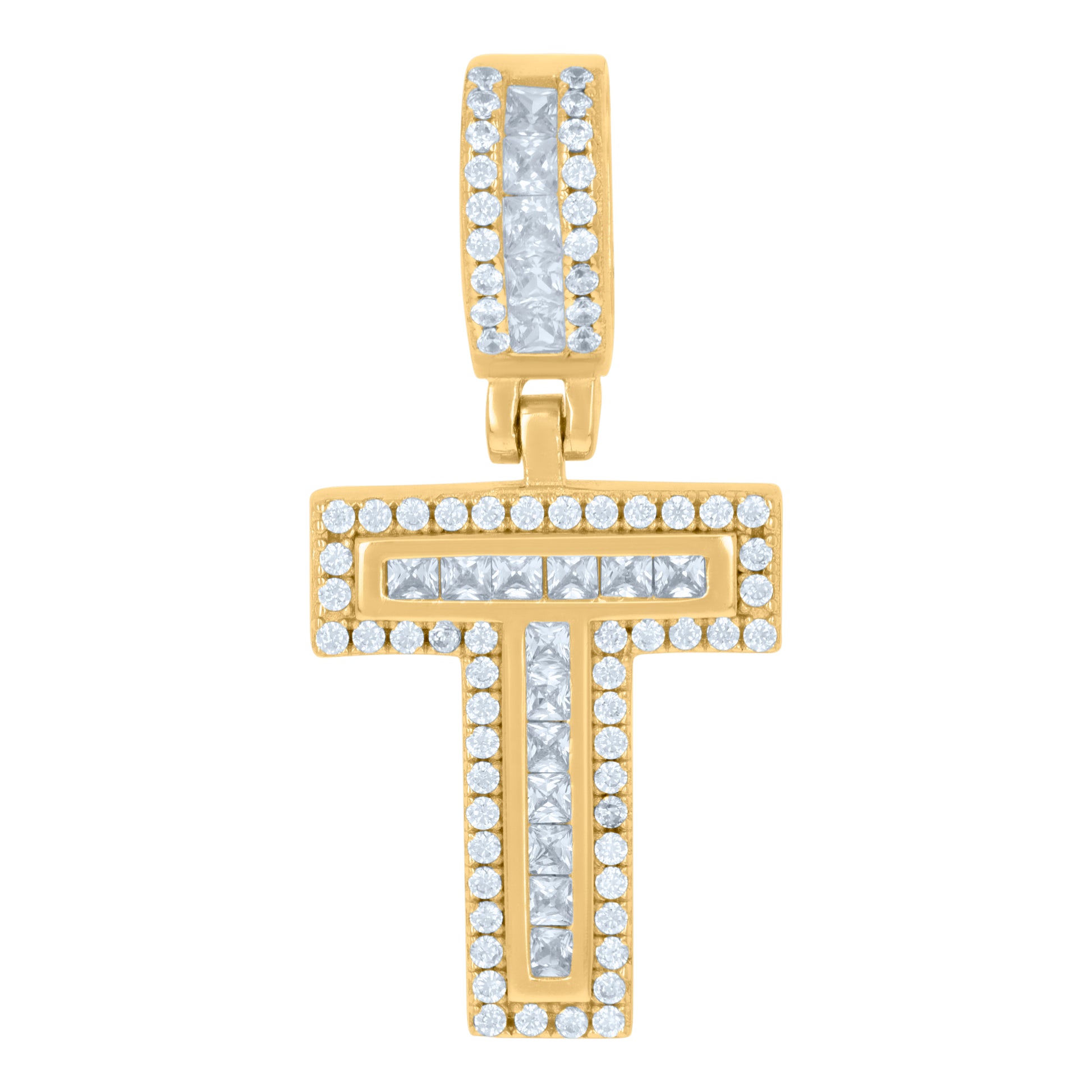 925 Sterling Silver Unisex Round & Baguette Cubic-Zirconia Initial Alphabet T Pendant Charm