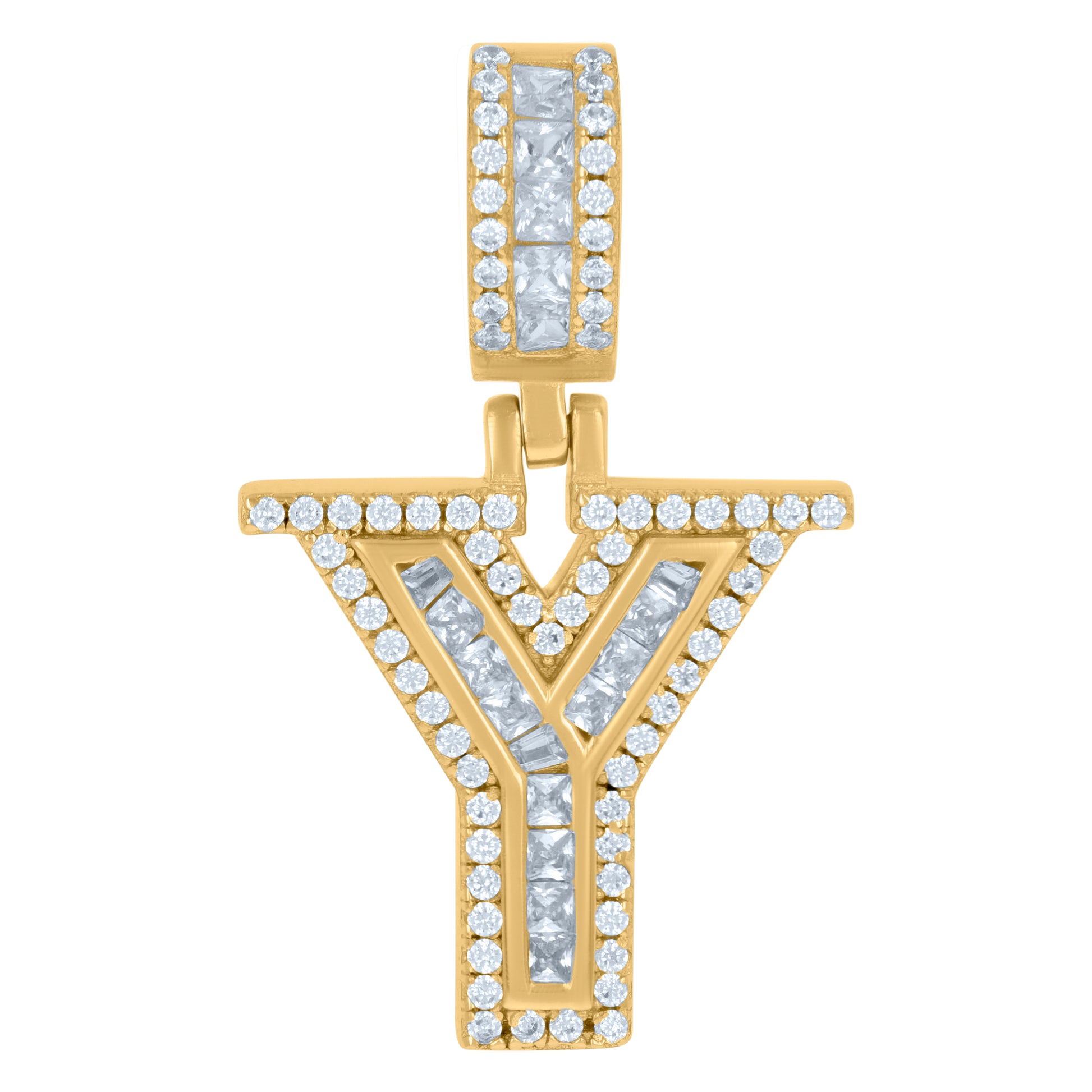 925 Sterling Silver Unisex Round & Baguette Cubic-Zirconia Initial Alphabet Y Pendant Charm