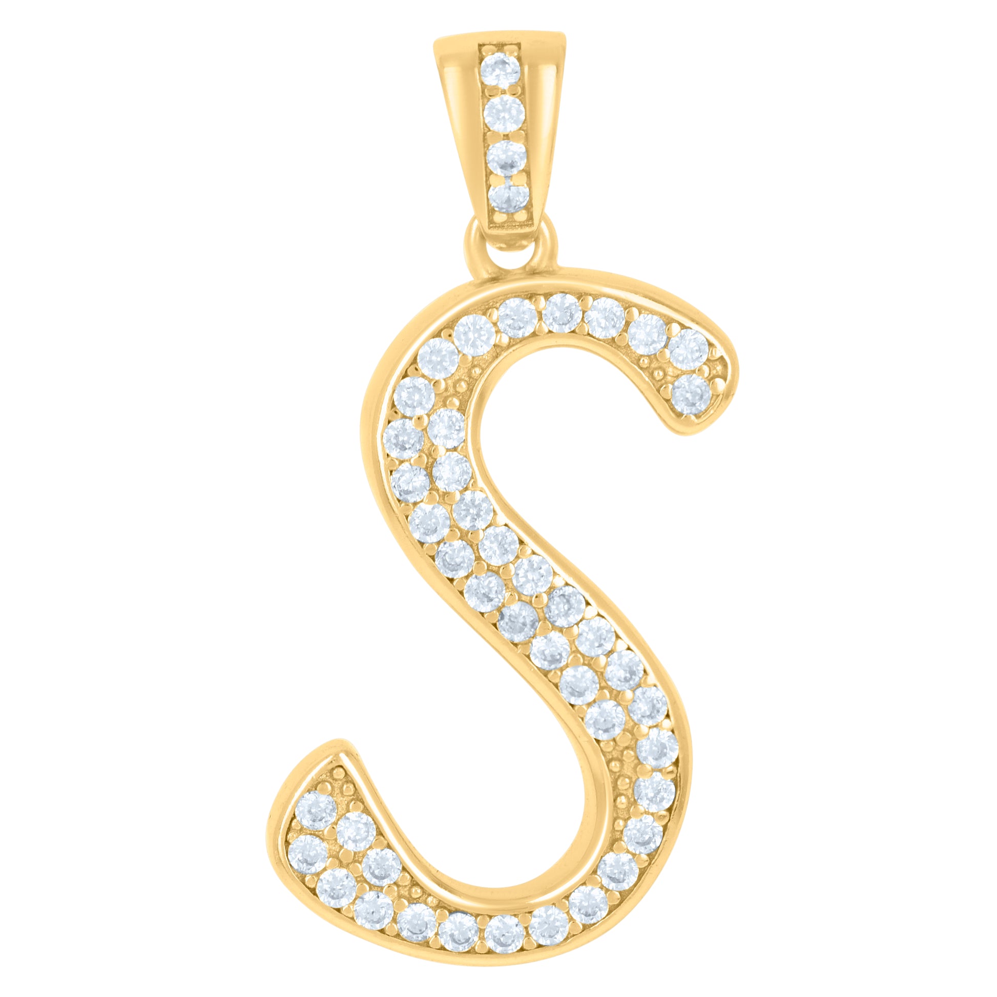 925 Sterling Silver Yellow-Tone Unisex Cubic-Zirconia S Alphabet Initials Charm Pendant