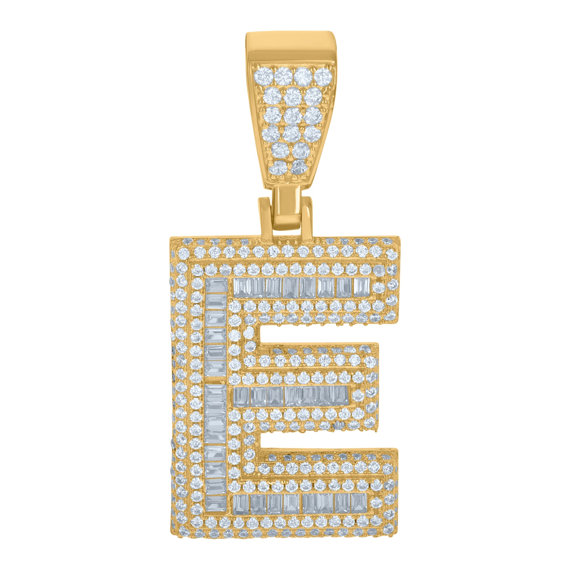 925 Sterling Silver Yellow-Tone Mens Baguette Round Cubic-Zirconia E Alphabet Initials Charm Pendant