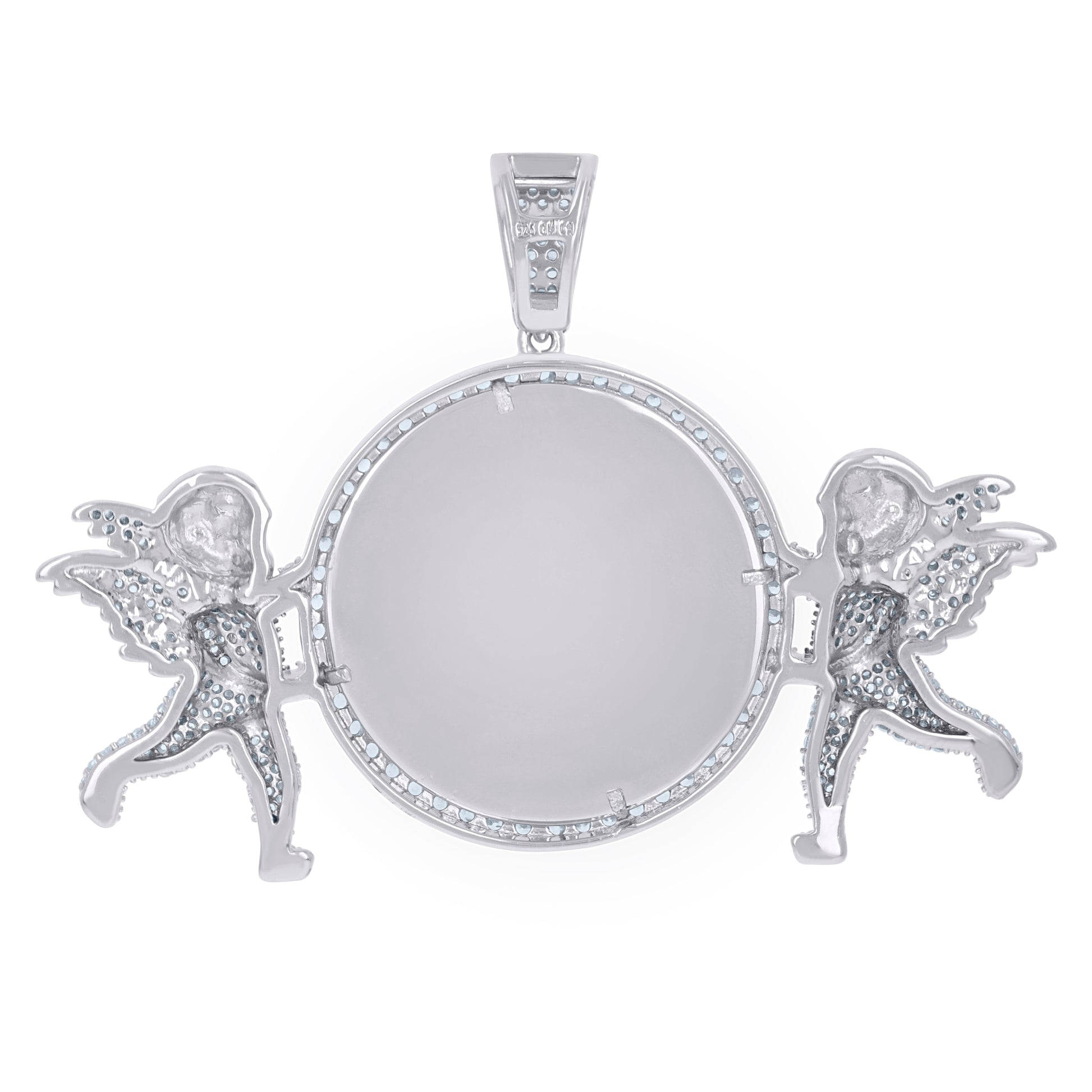 925 Sterling Silver Mens Cubic-Zirconia Angels Picture Frame Charm Pendant