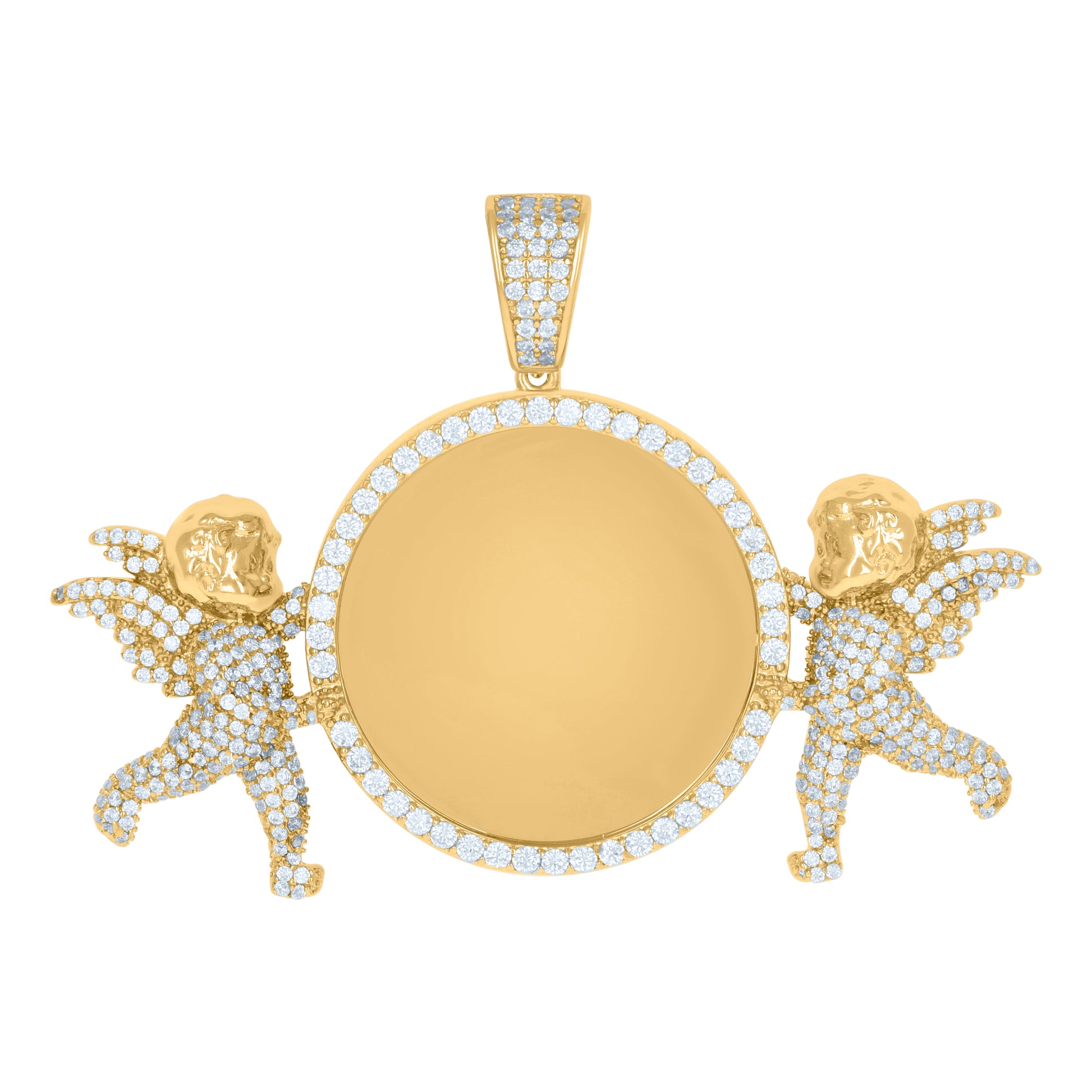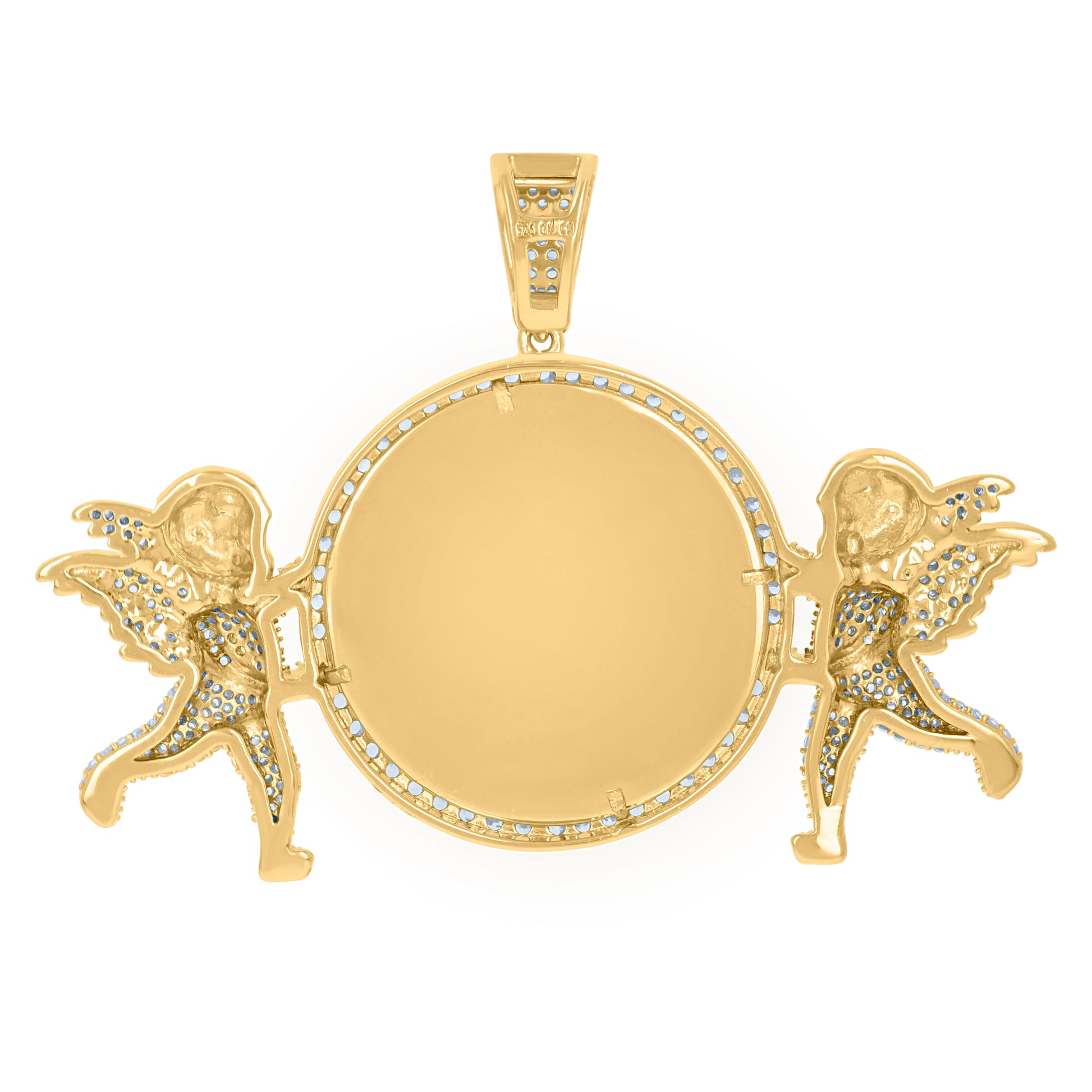 925 Sterling Silver Yellow-Tone Mens Cubic-Zirconia Angels Picture Frame Charm Pendant