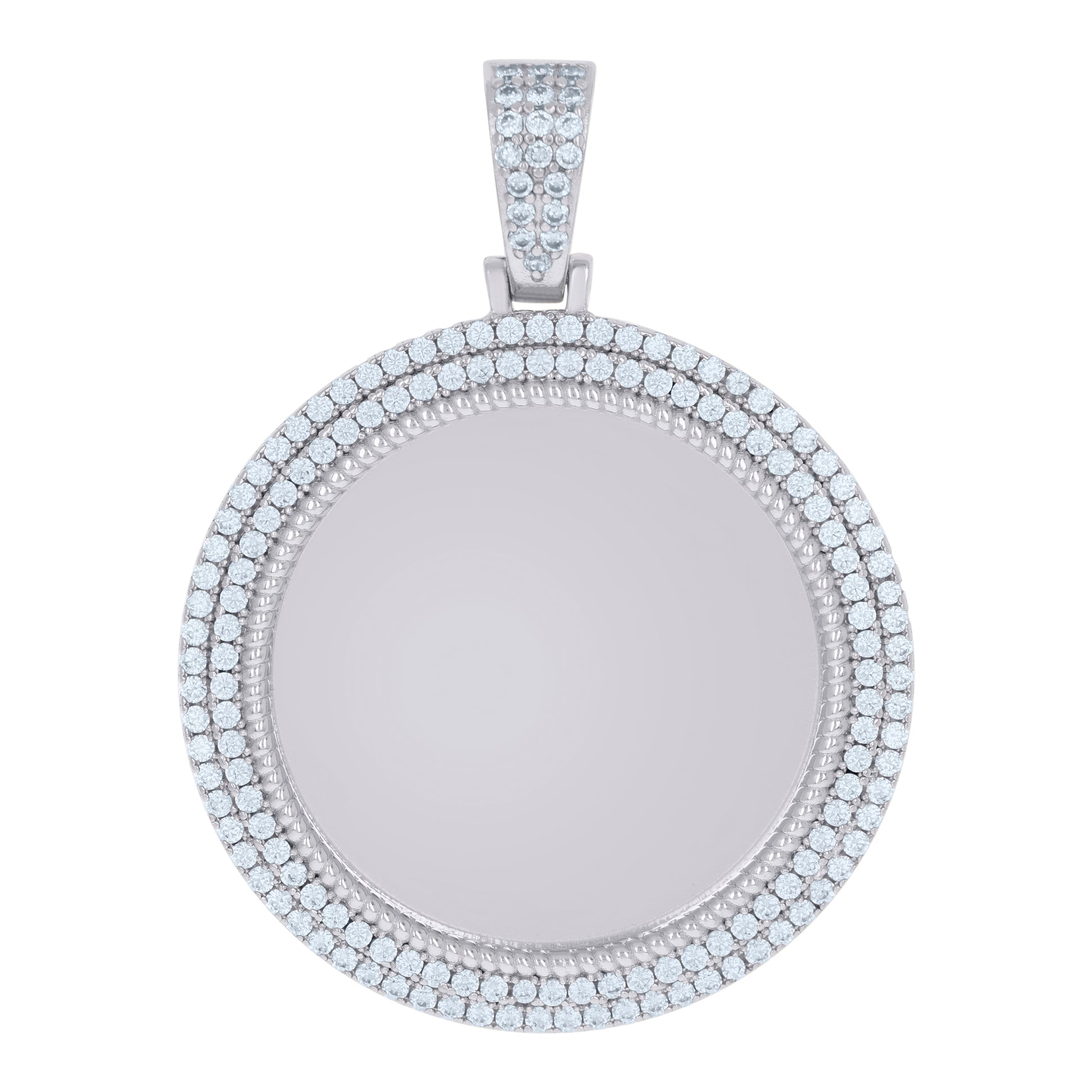 925 Sterling Silver Mens Cubic-Zirconia Picture Frame Charm Pendant