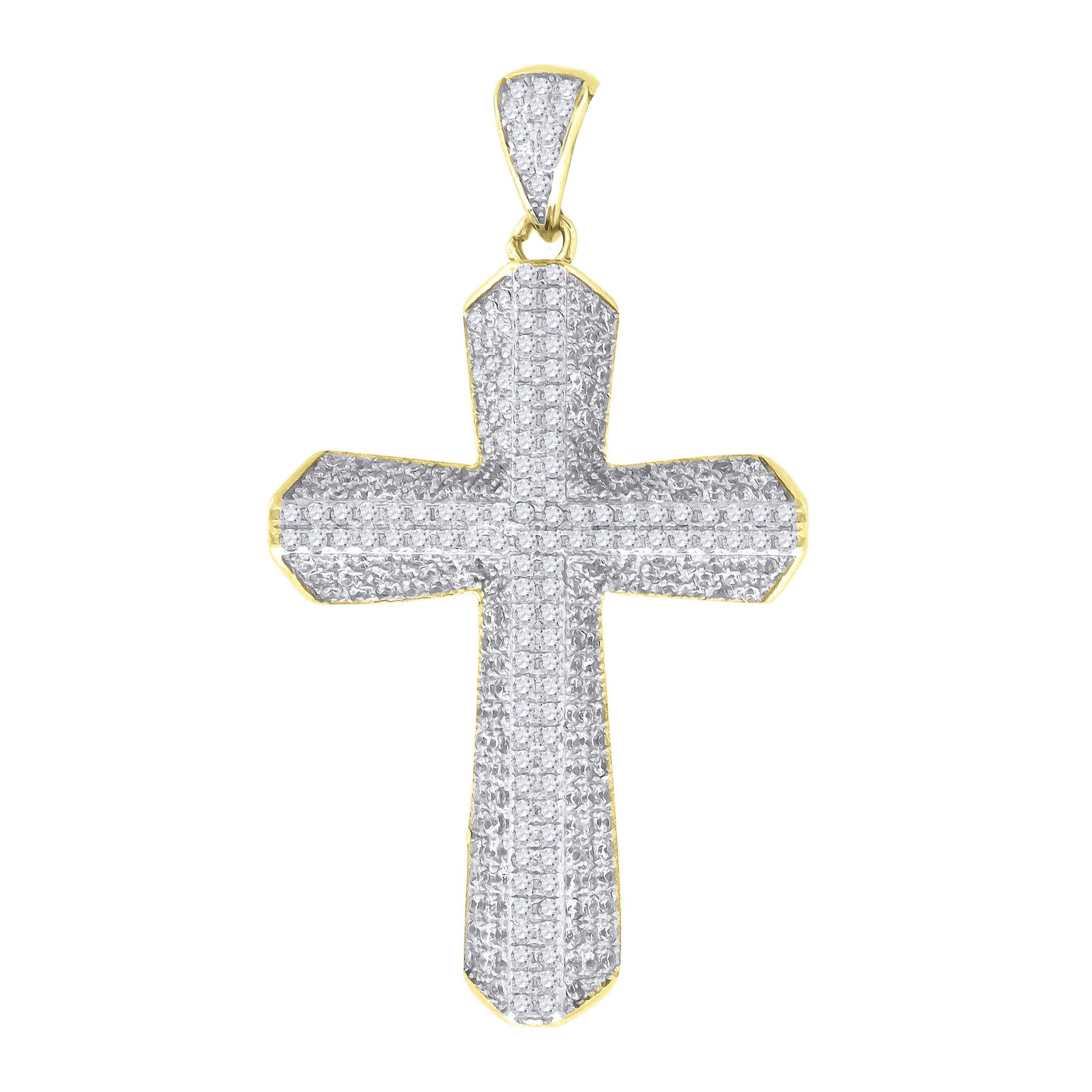 925 Sterling Silver Yellow-Tone Unisex CZ Cross Religious Charm Pendant