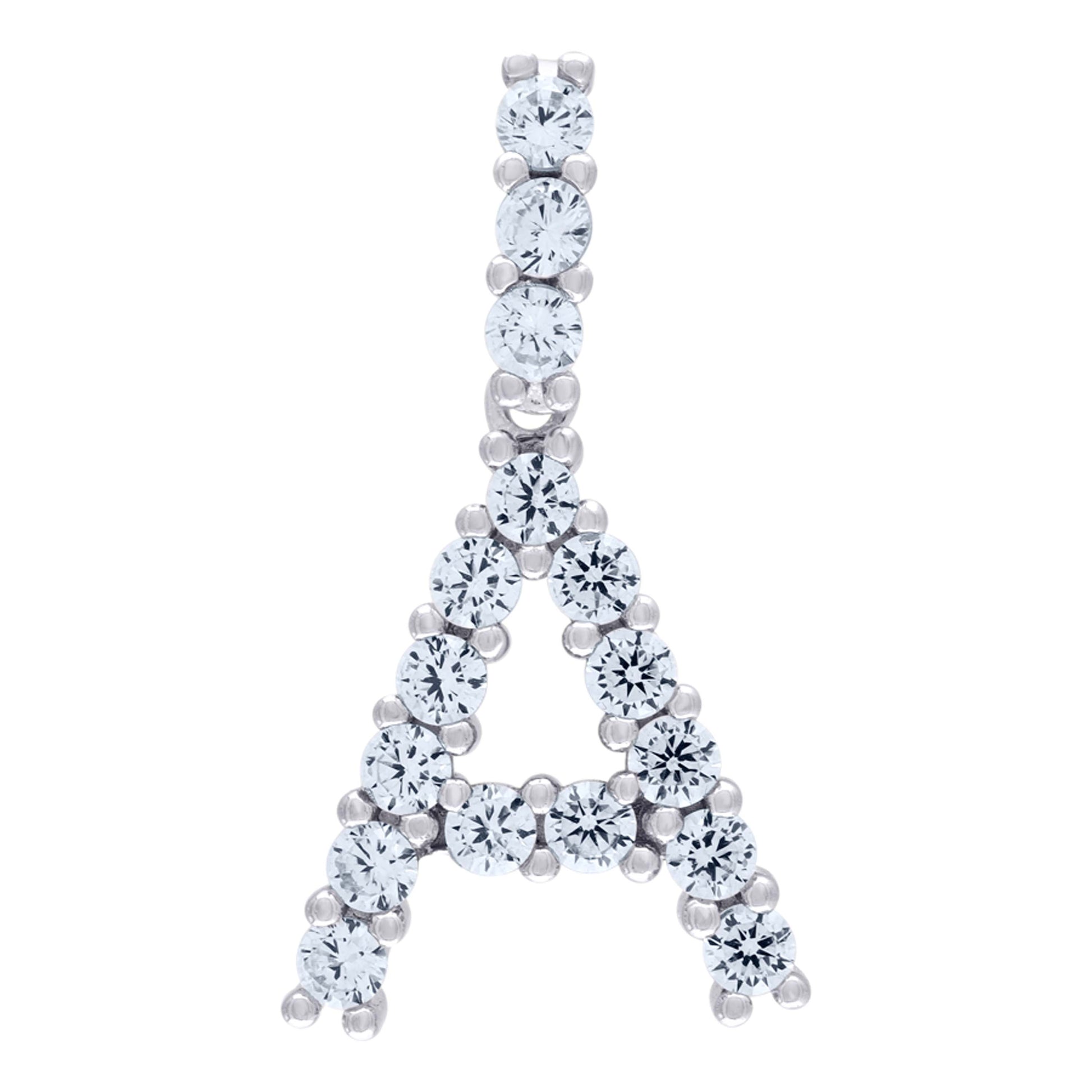 925 Sterling Silver Unisex CZ Initial Alphabet A Charm Pendant
