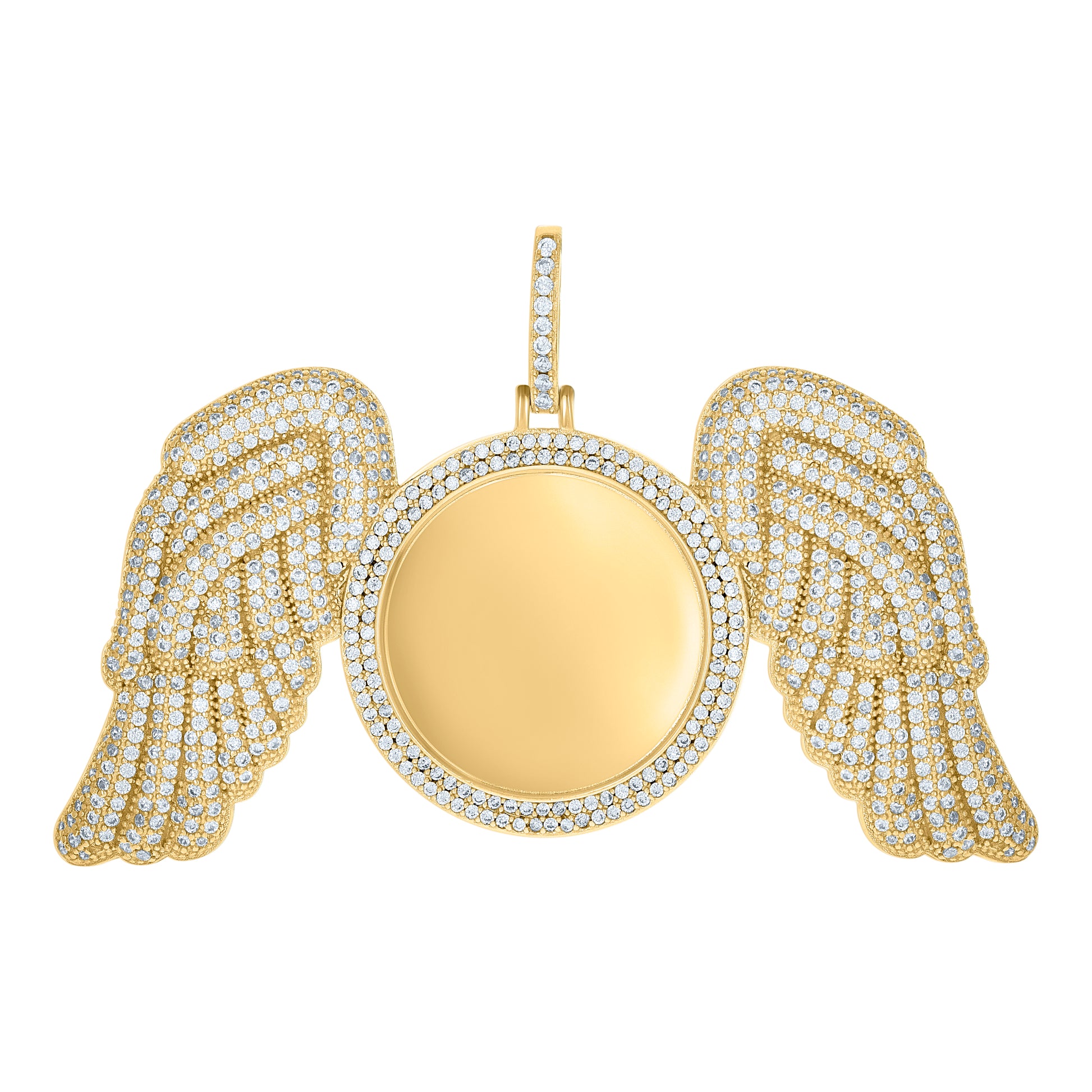 925 Sterling Silver Yellow-Tone Mens Cubic-Zirconia Flying Picture Frame Charm Pendant