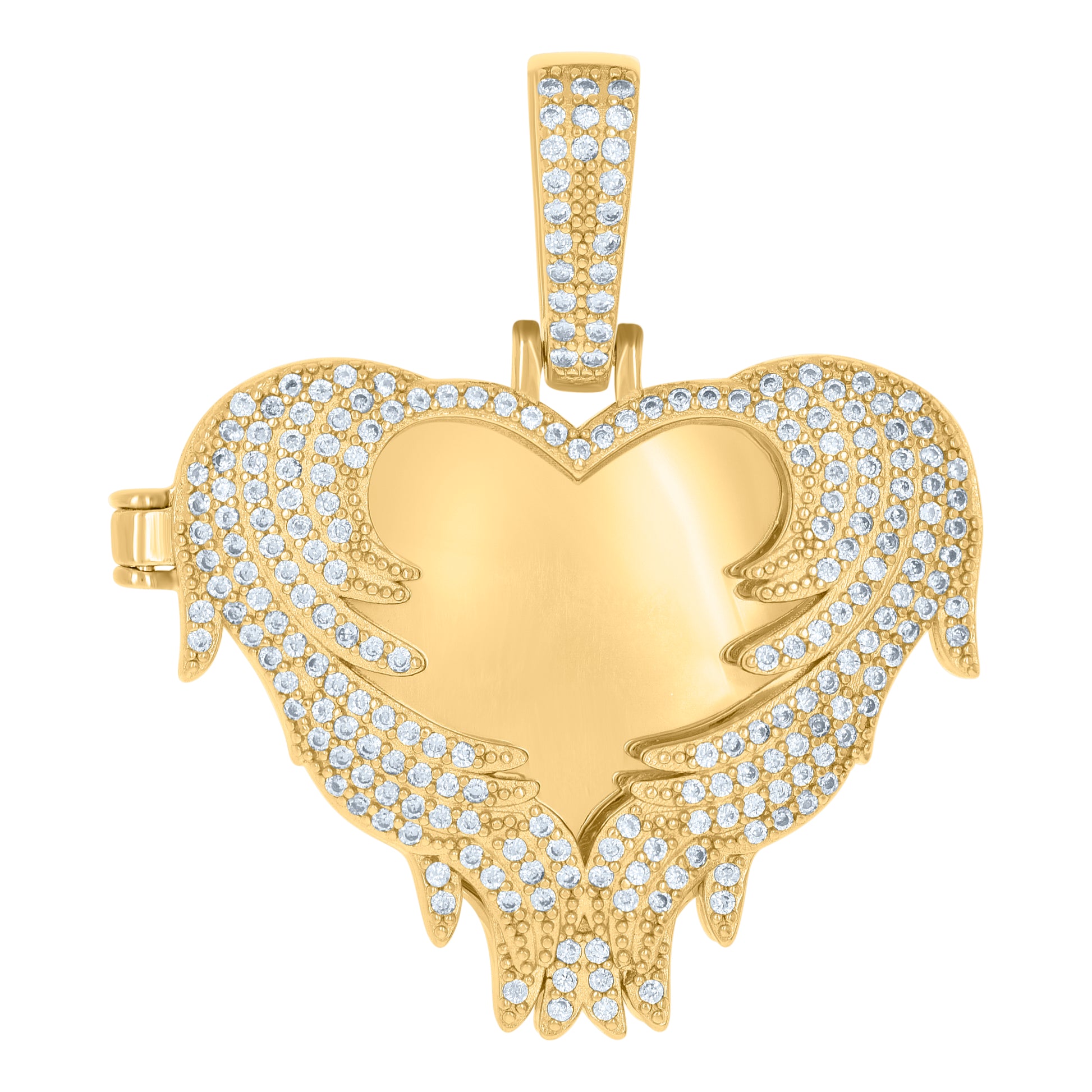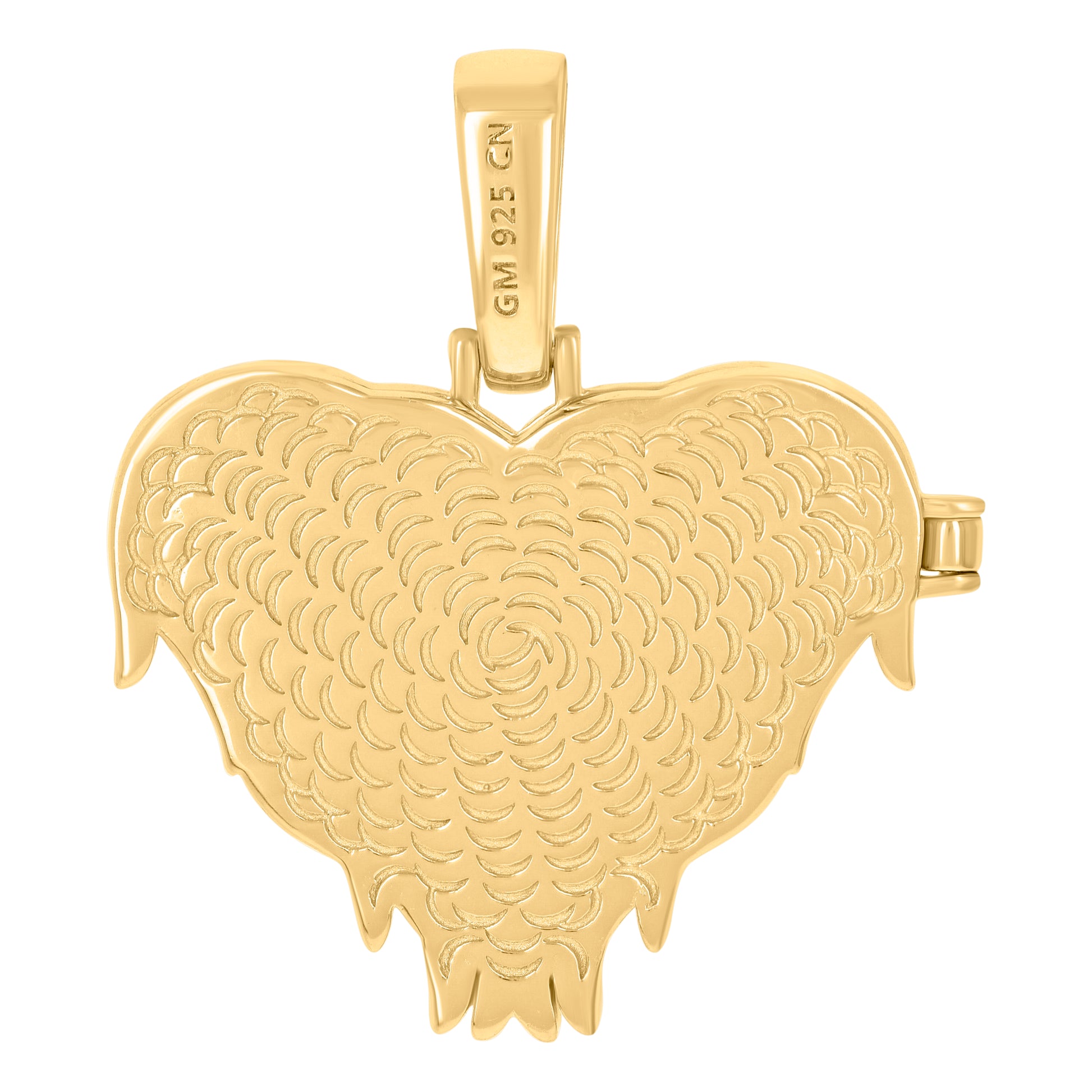 925 Sterling Silver Yellow-Tone Mens Cubic-Zirconia Heart Picture Frame Charm Pendant