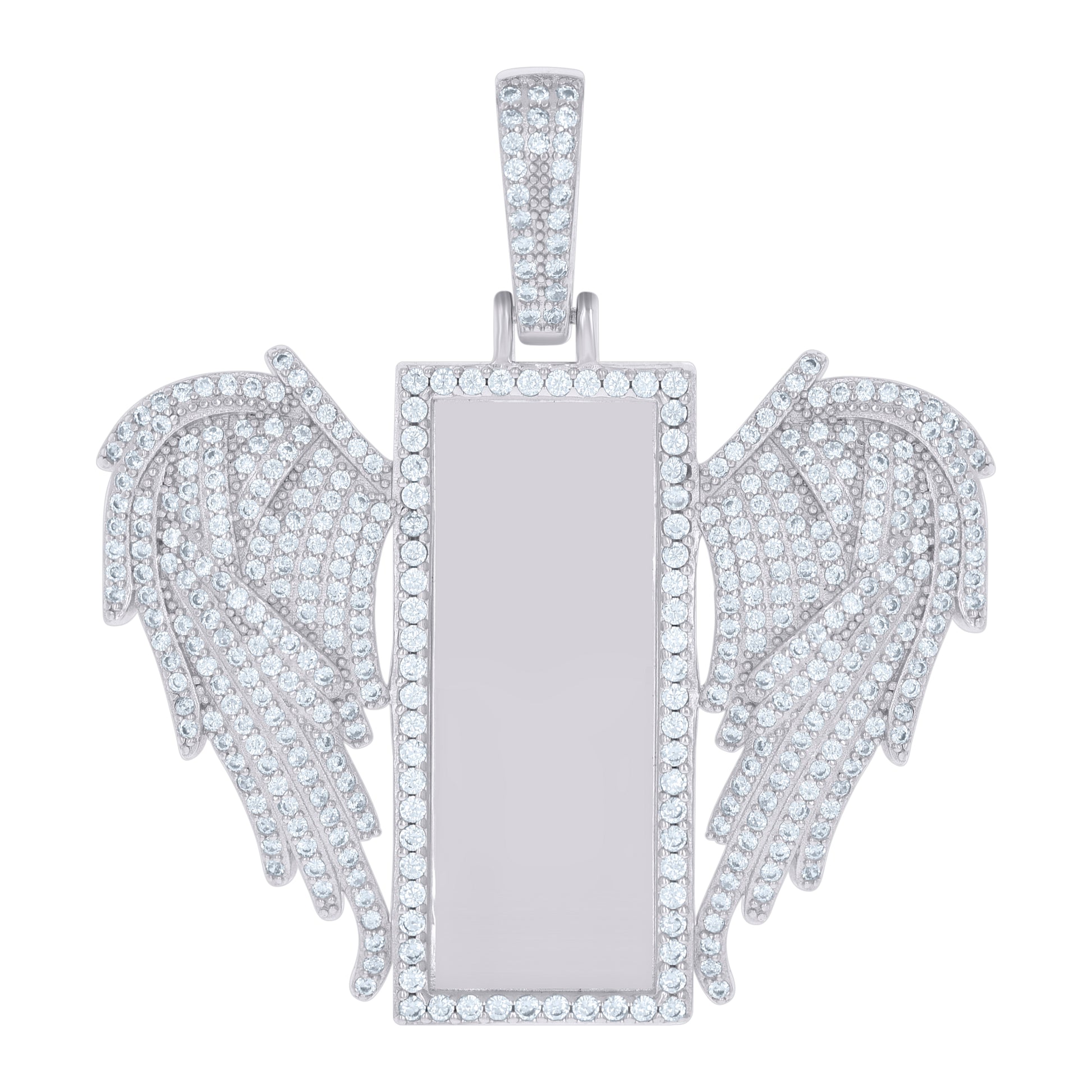 925 Sterling Silver Mens Cubic-Zirconia Flying Dog Tag Fashion Picture Frame Charm Pendant