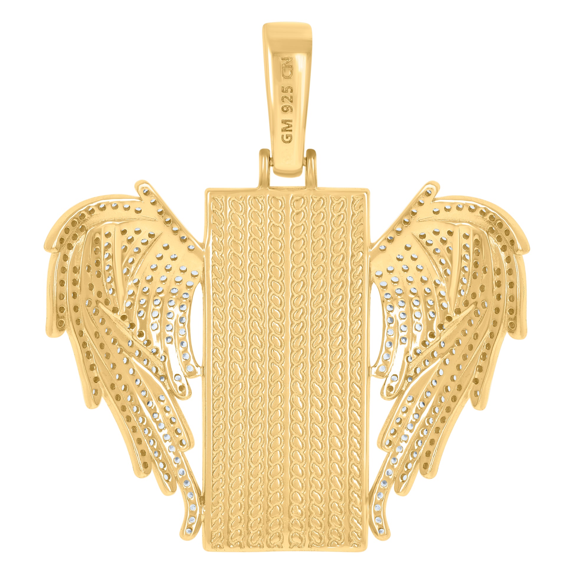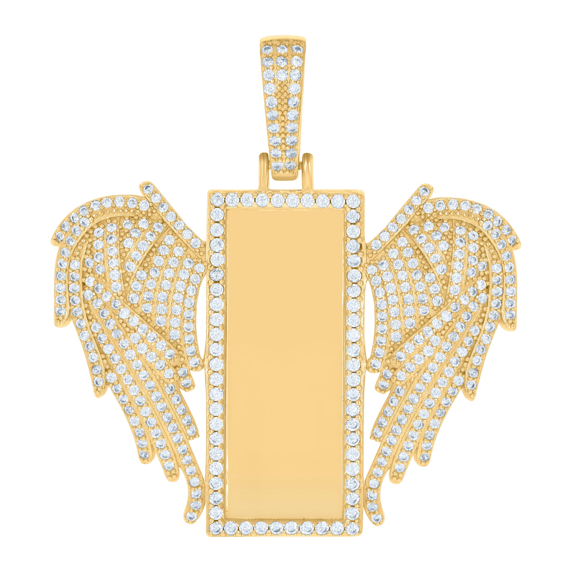 925 Sterling Silver Yellow-Tone Mens Cubic-Zirconia Flying Dog Tag Fashion Picture Frame Charm Pendant