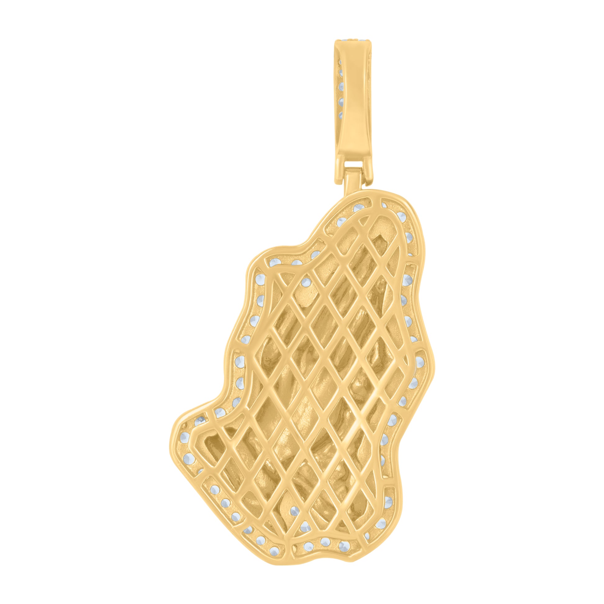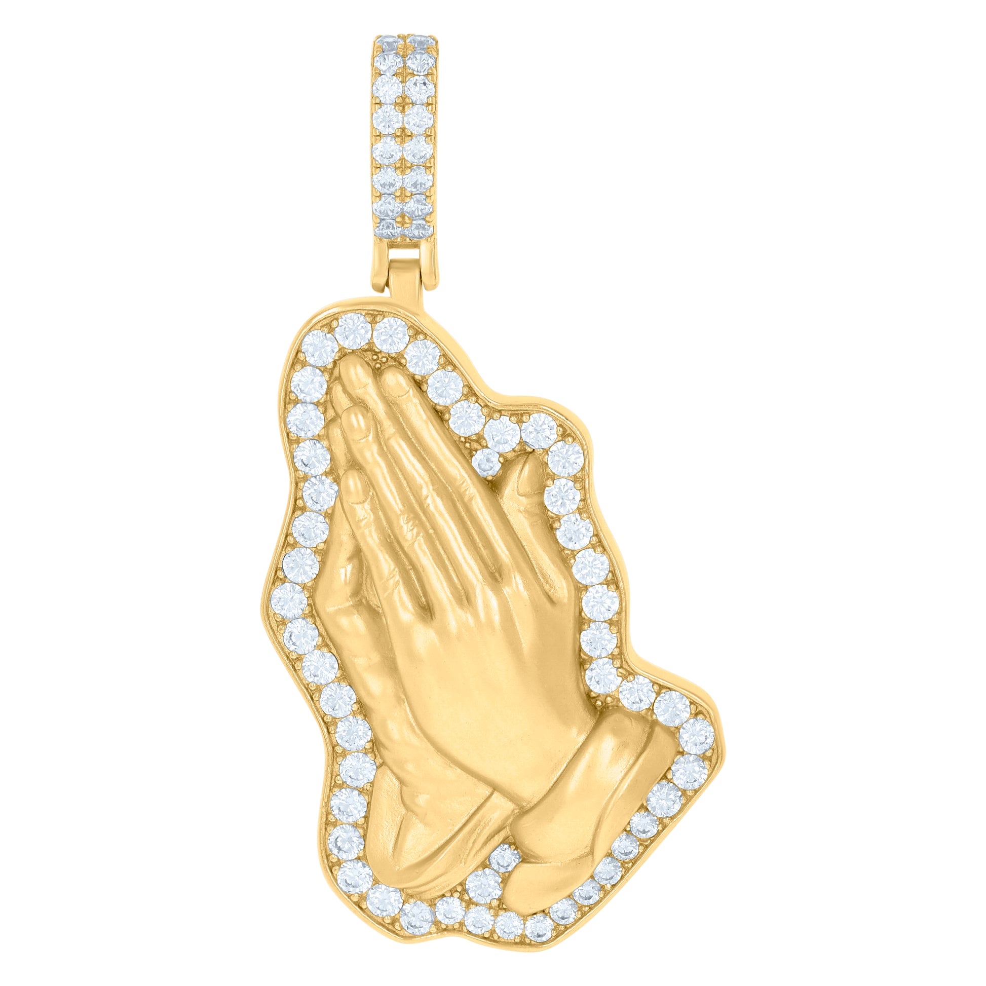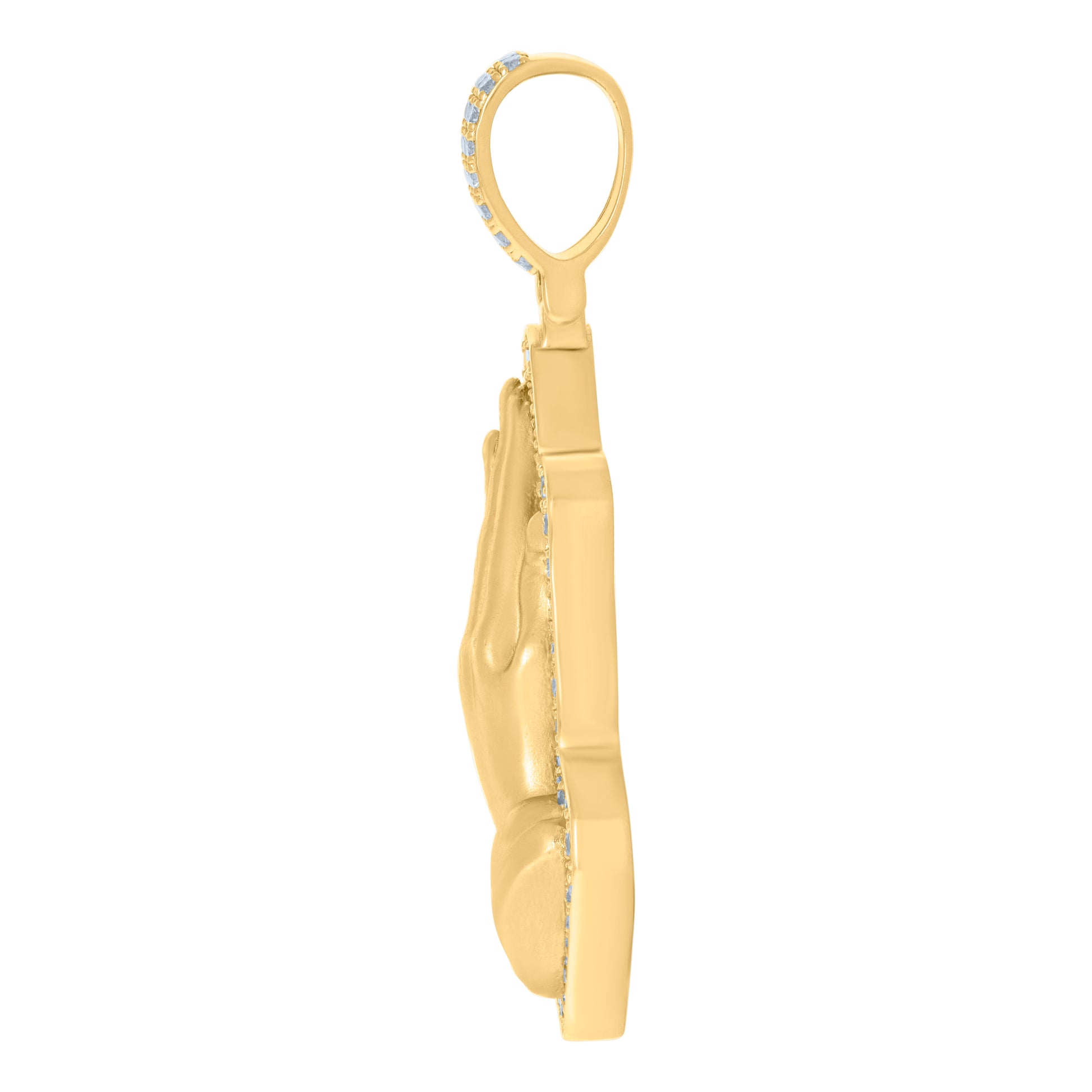 925 Sterling Silver Yellow-Tone Mens Cubic-Zirconia Praying Hands Symbol Religious Charm Pendant