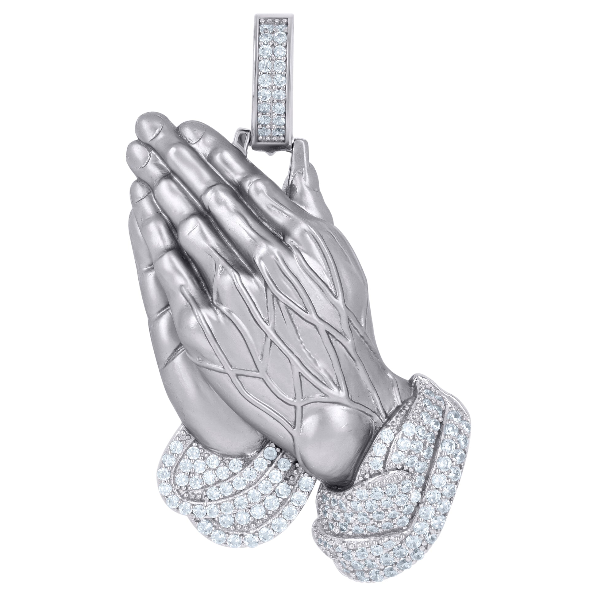 925 Sterling Silver Mens Cubic-Zirconia Praying Hands Symbol Religious Charm Pendant