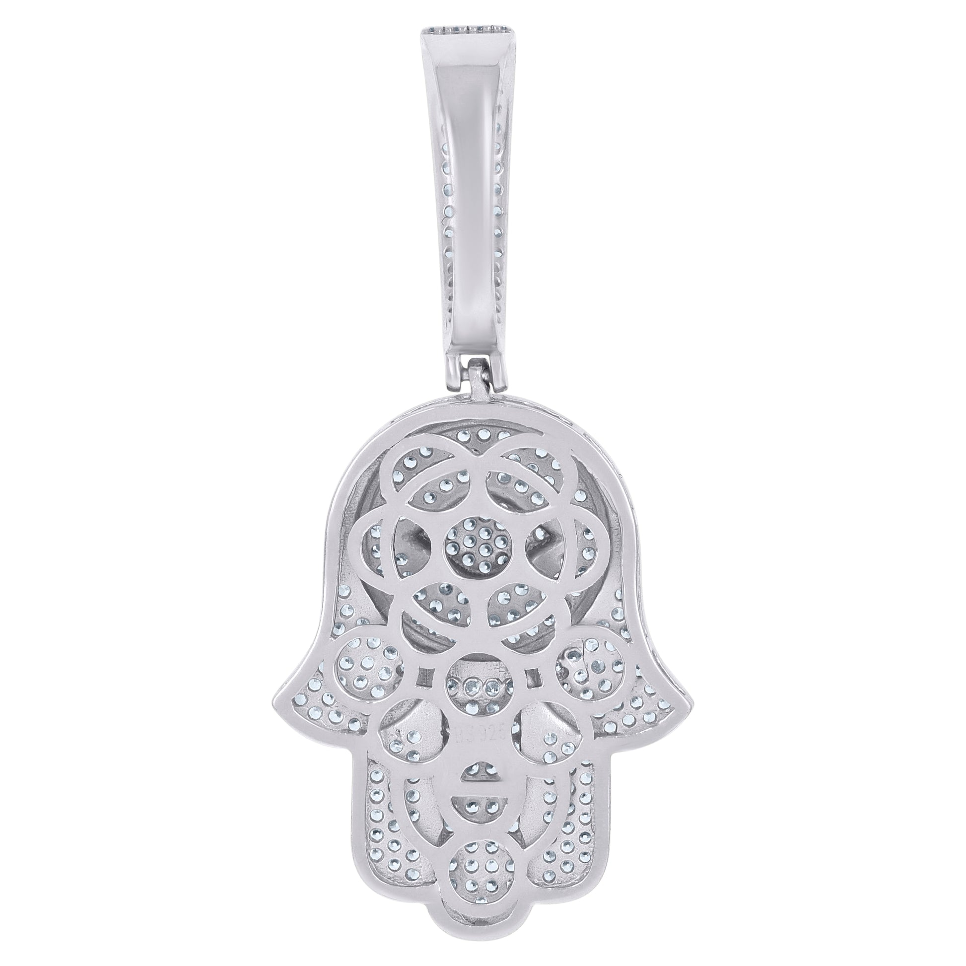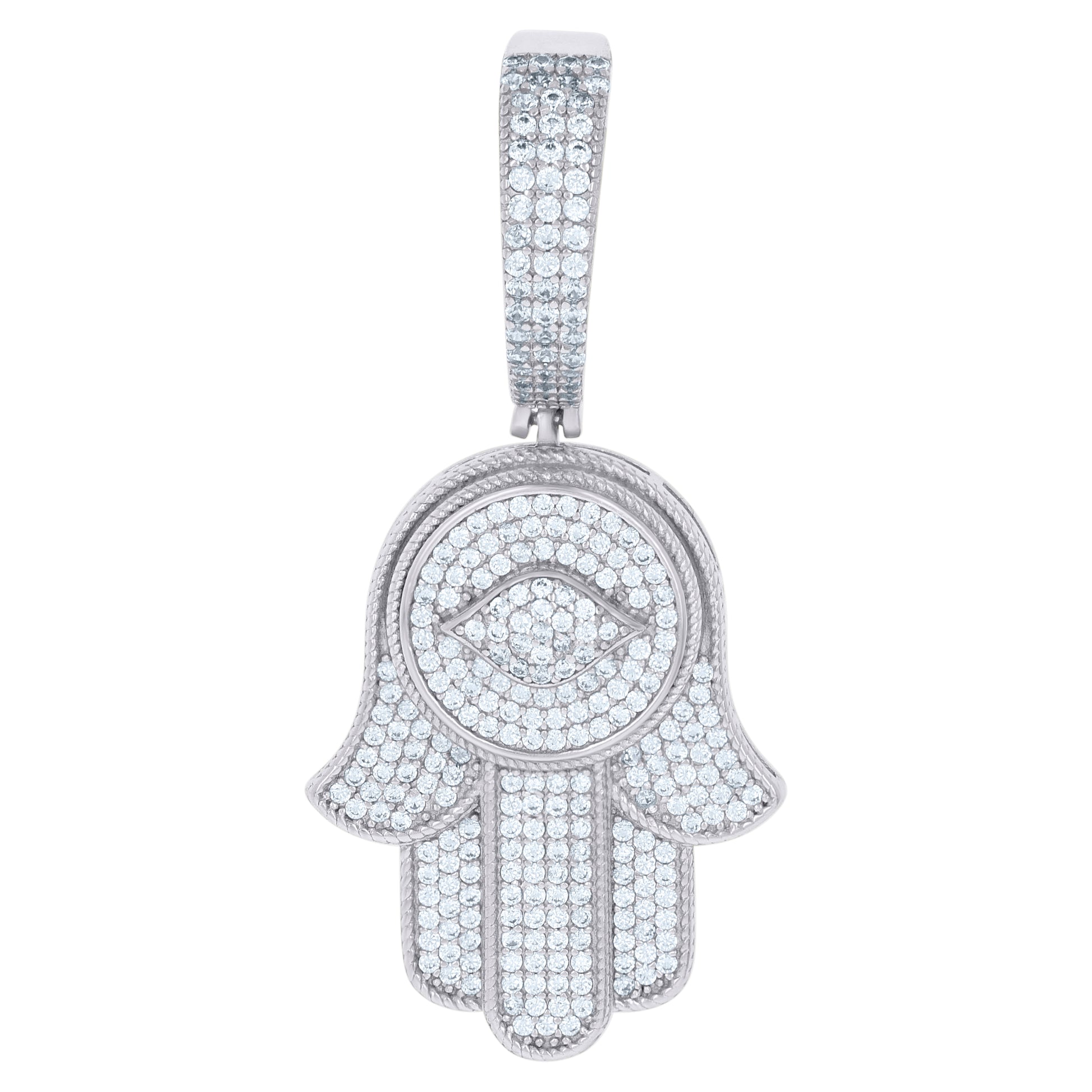 925 Sterling Silver Mens Cubic-Zirconia Hamsa Religious Charm Pendant