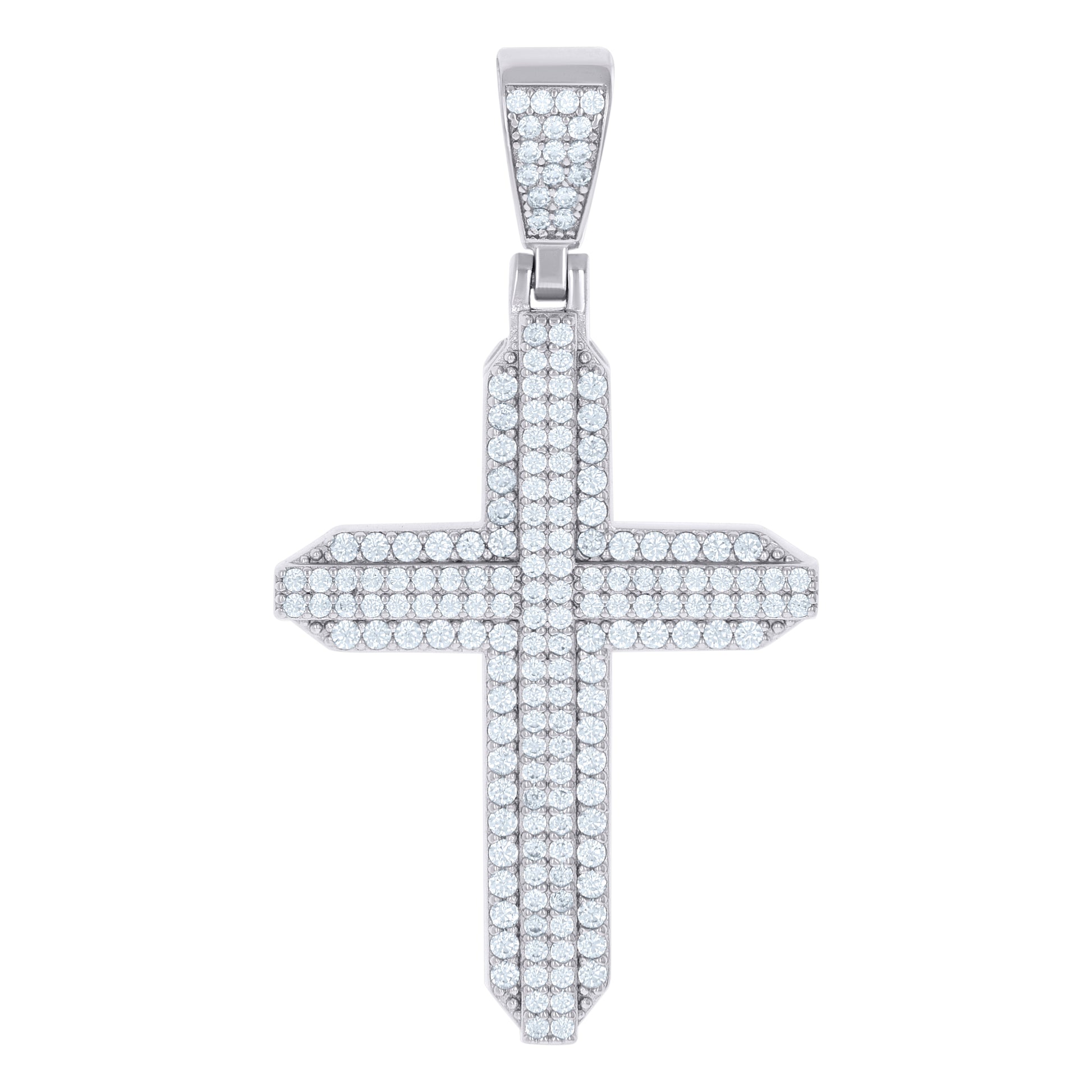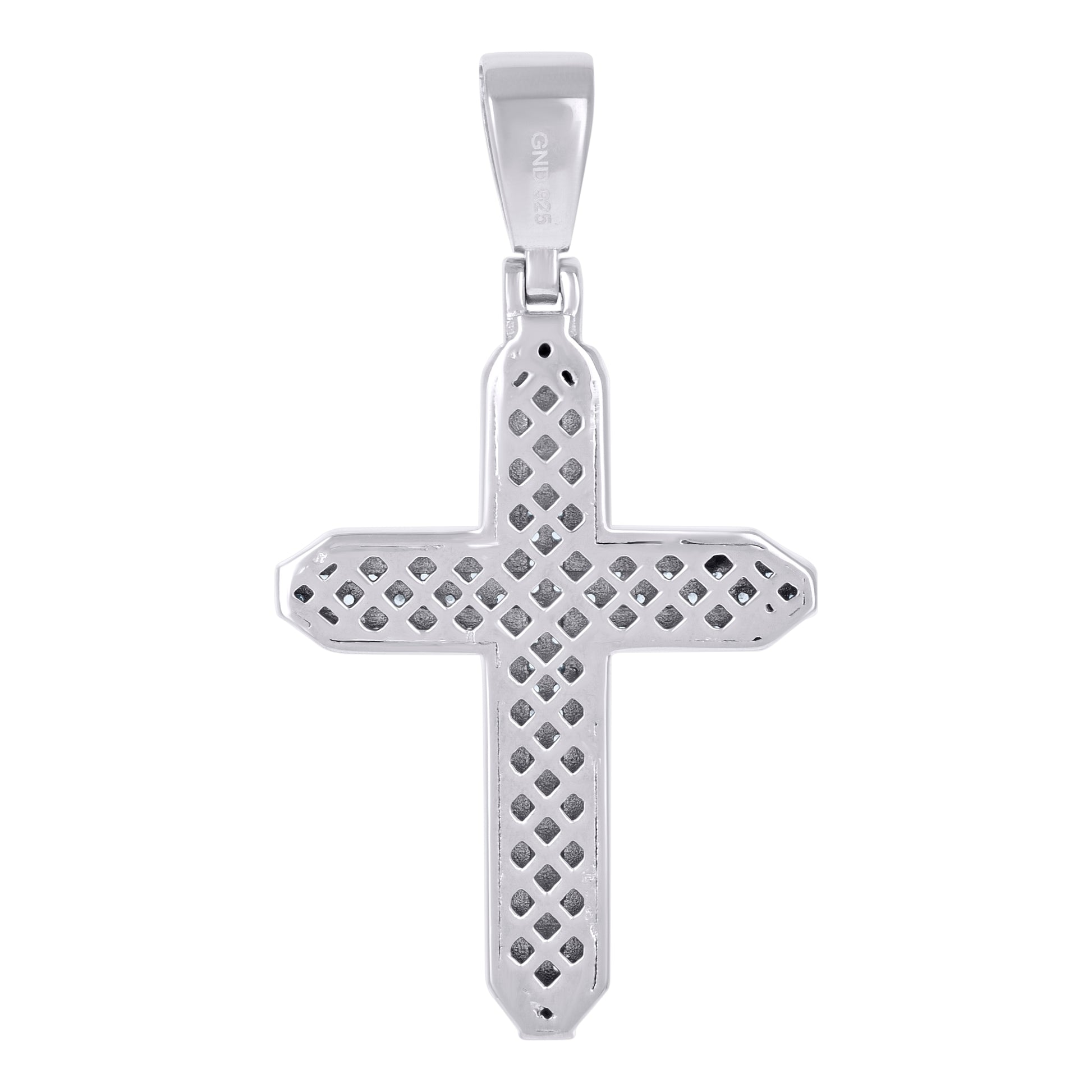 925 Sterling Silver Mens Cubic-Zirconia Cross Religious Charm Pendant