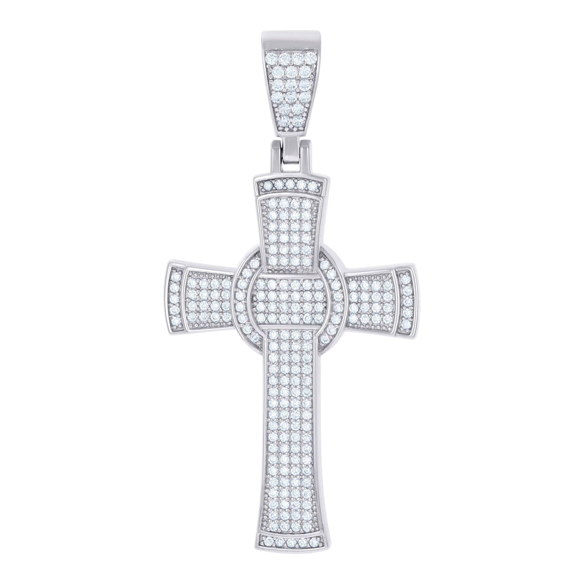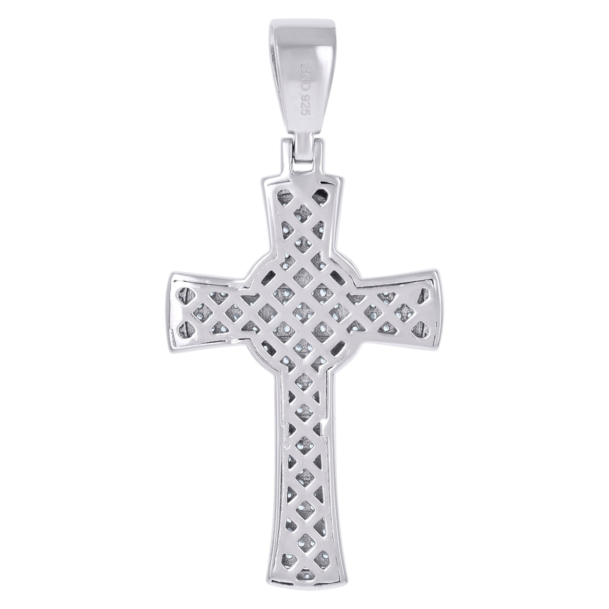 925 Sterling Silver Mens Cubic-Zirconia Cross Religious Charm Pendant