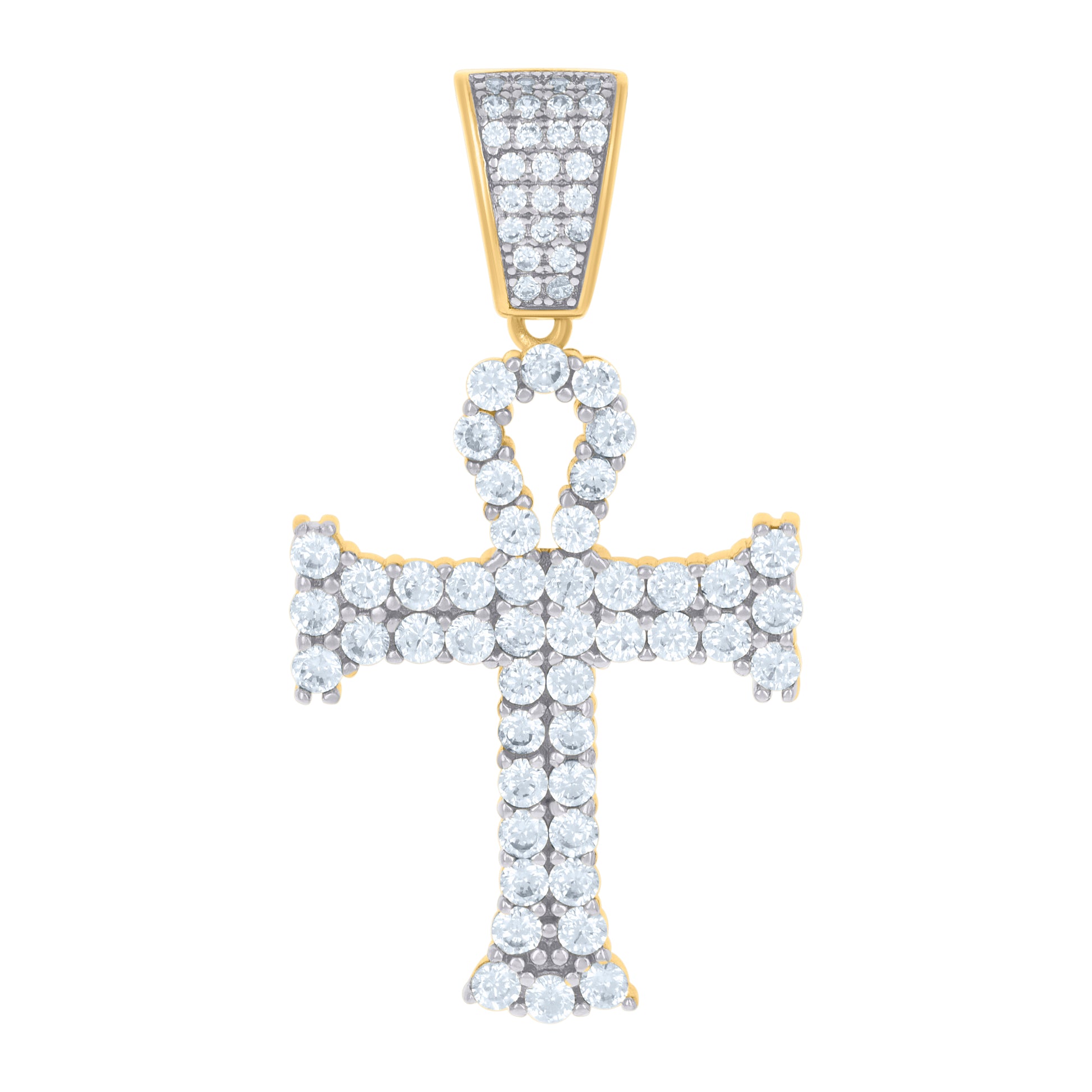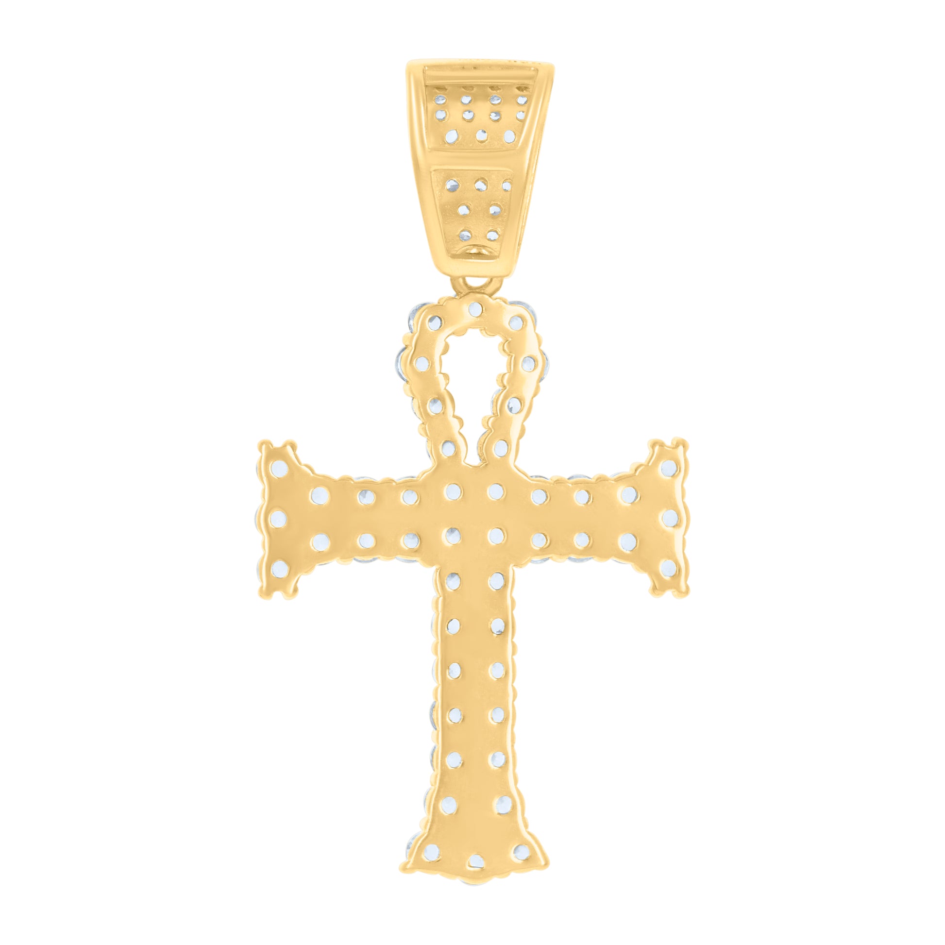 925 Sterling Silver Yellow-Tone Mens Cubic-Zirconia Cross Religious Charm Pendant
