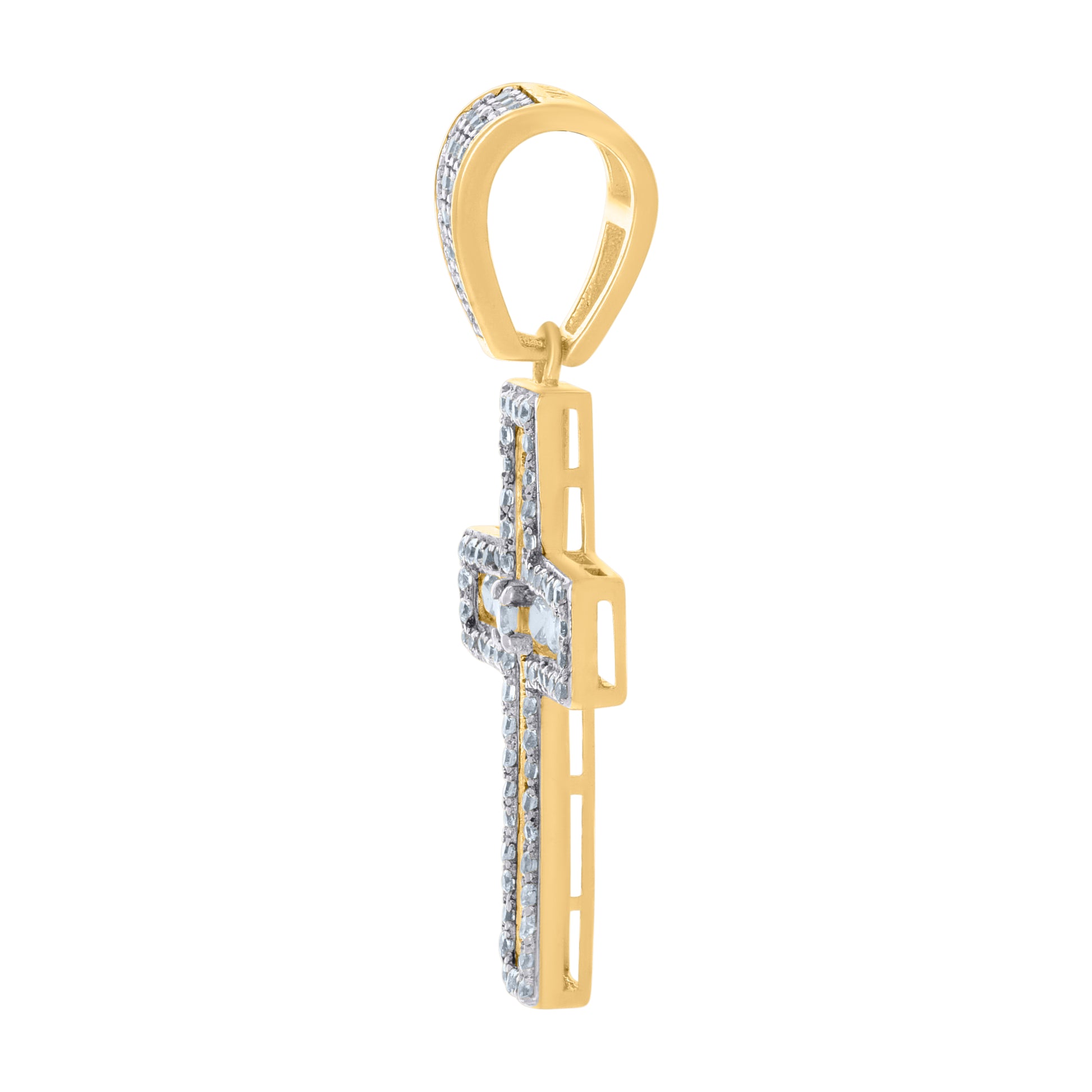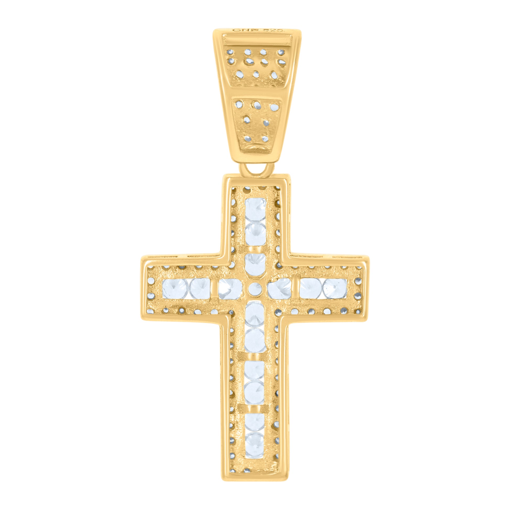 925 Sterling Silver Yellow-Tone Mens Cubic-Zirconia Cross Religious Charm Pendant