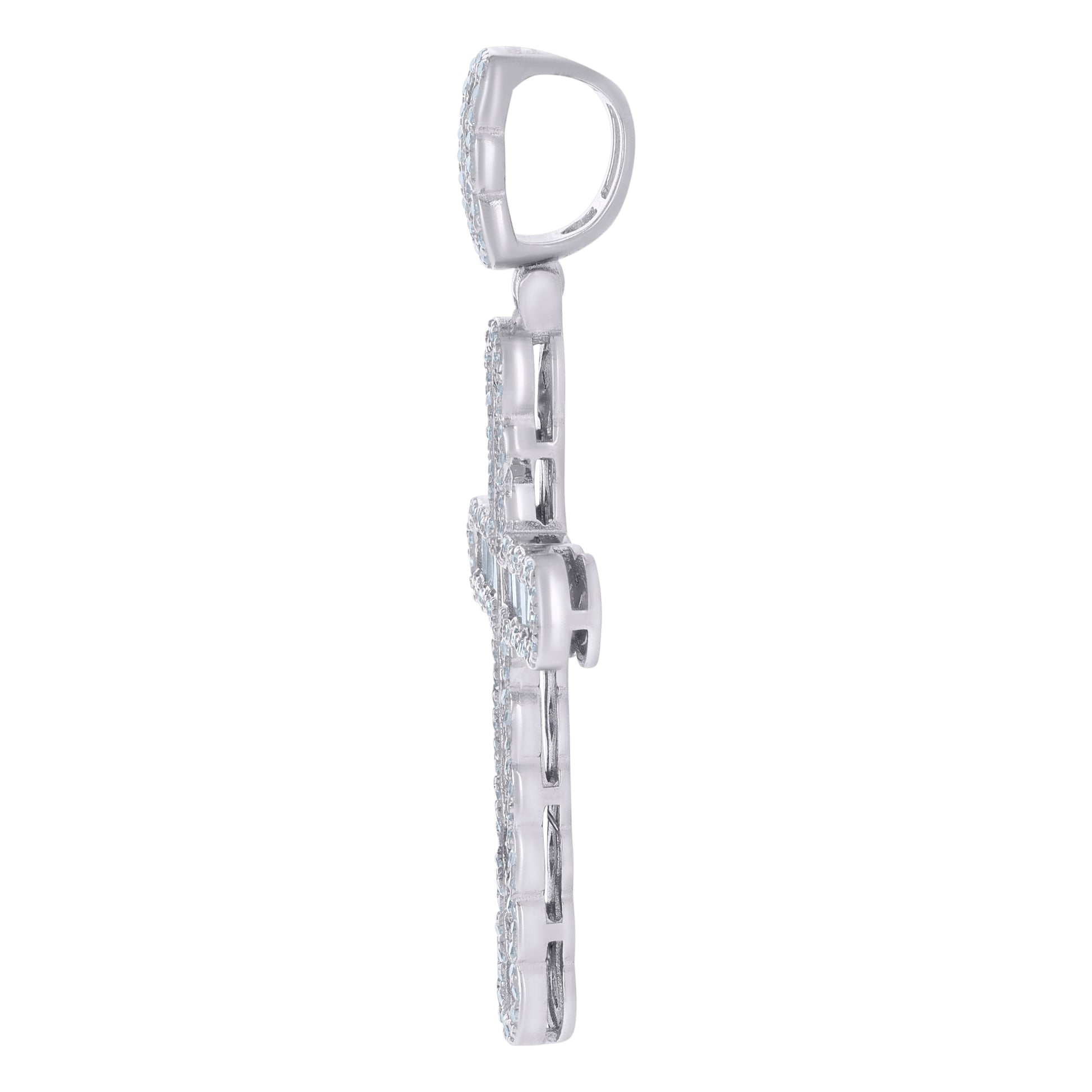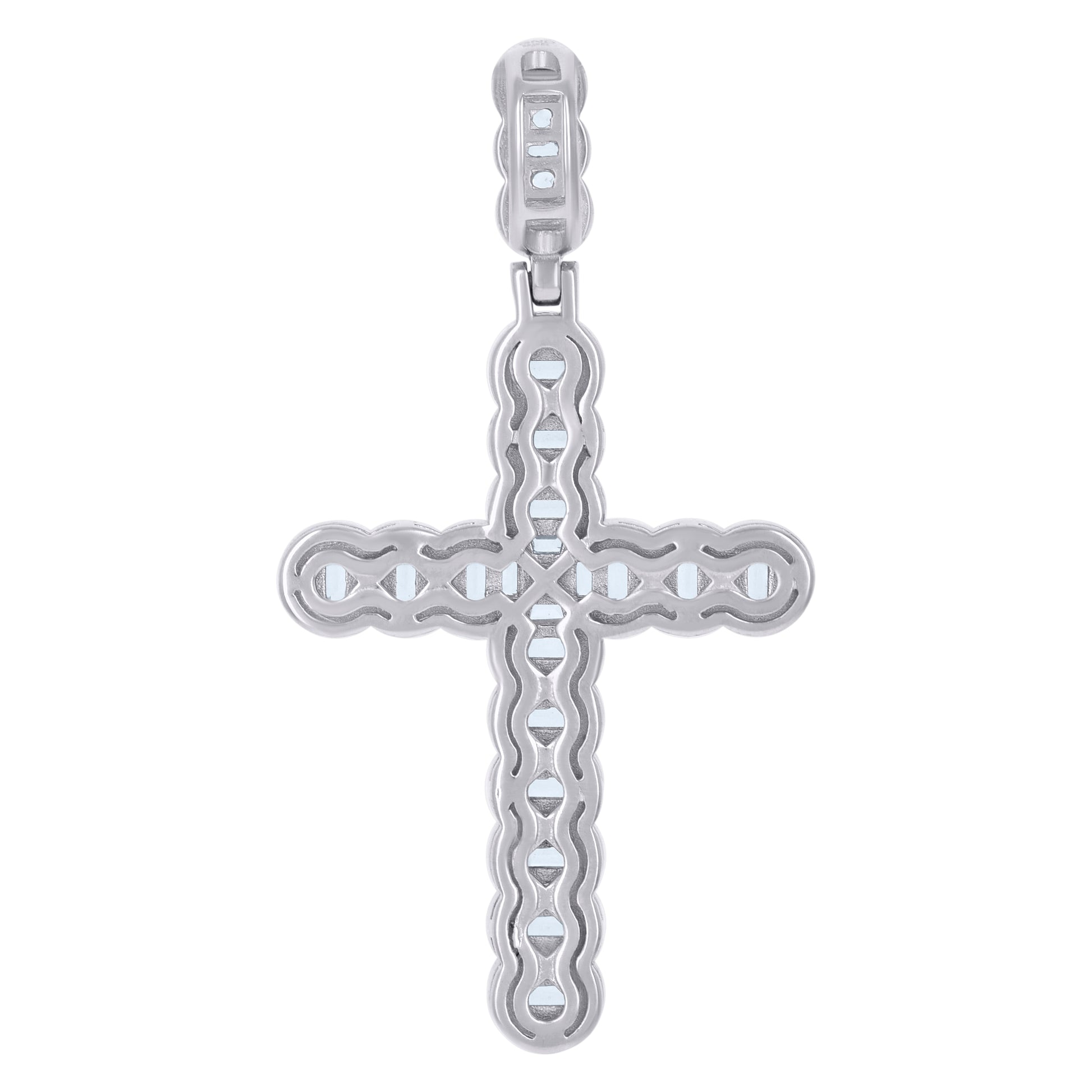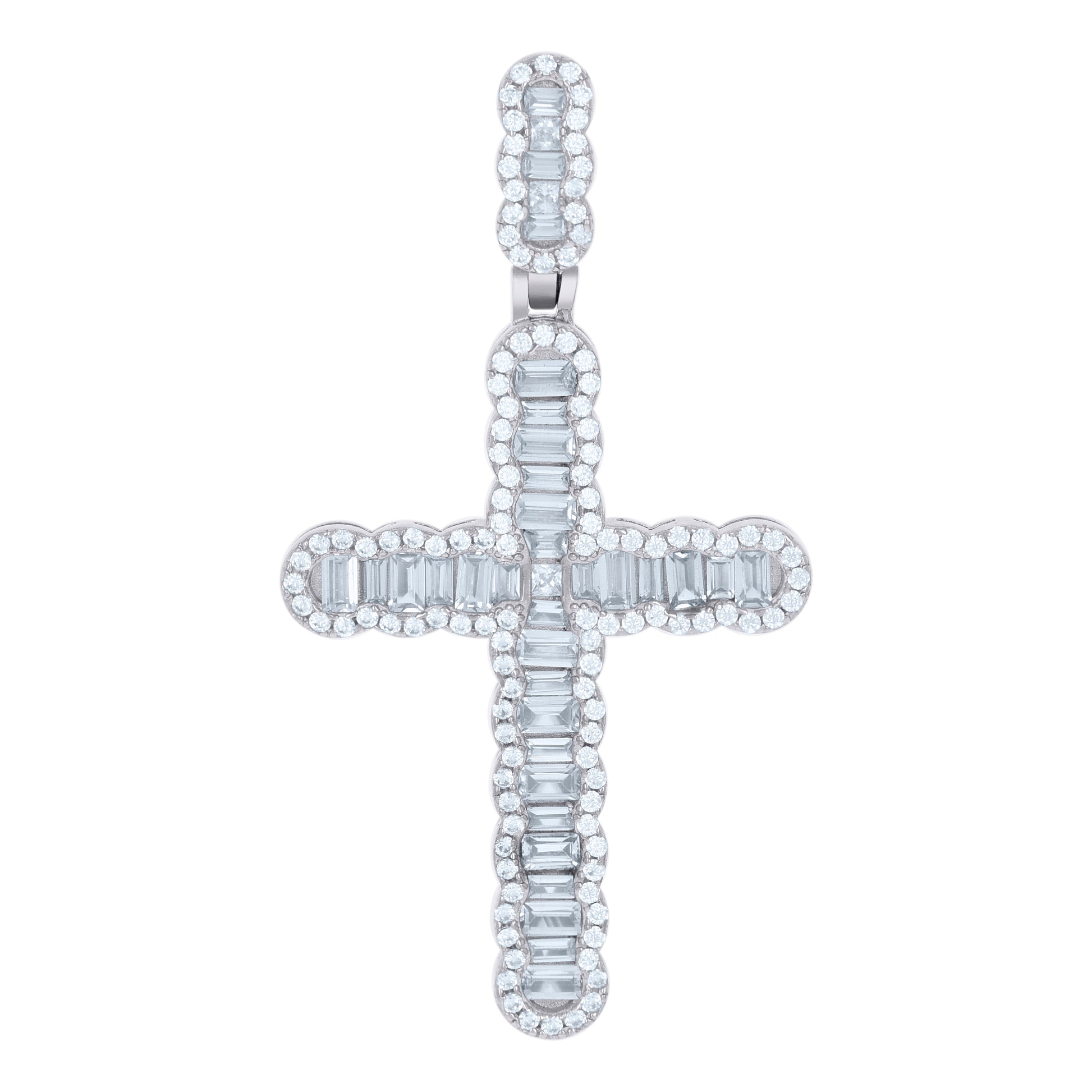 925 Sterling Silver Mens Baguette Round Cubic-Zirconia Cross Religious Charm Pendant