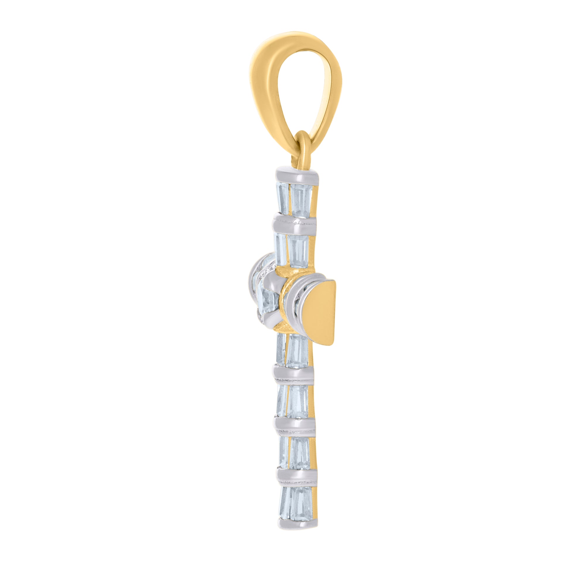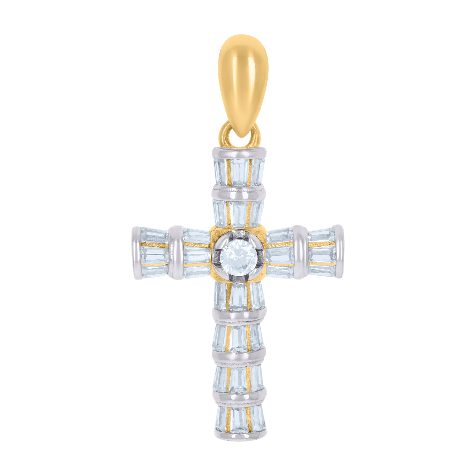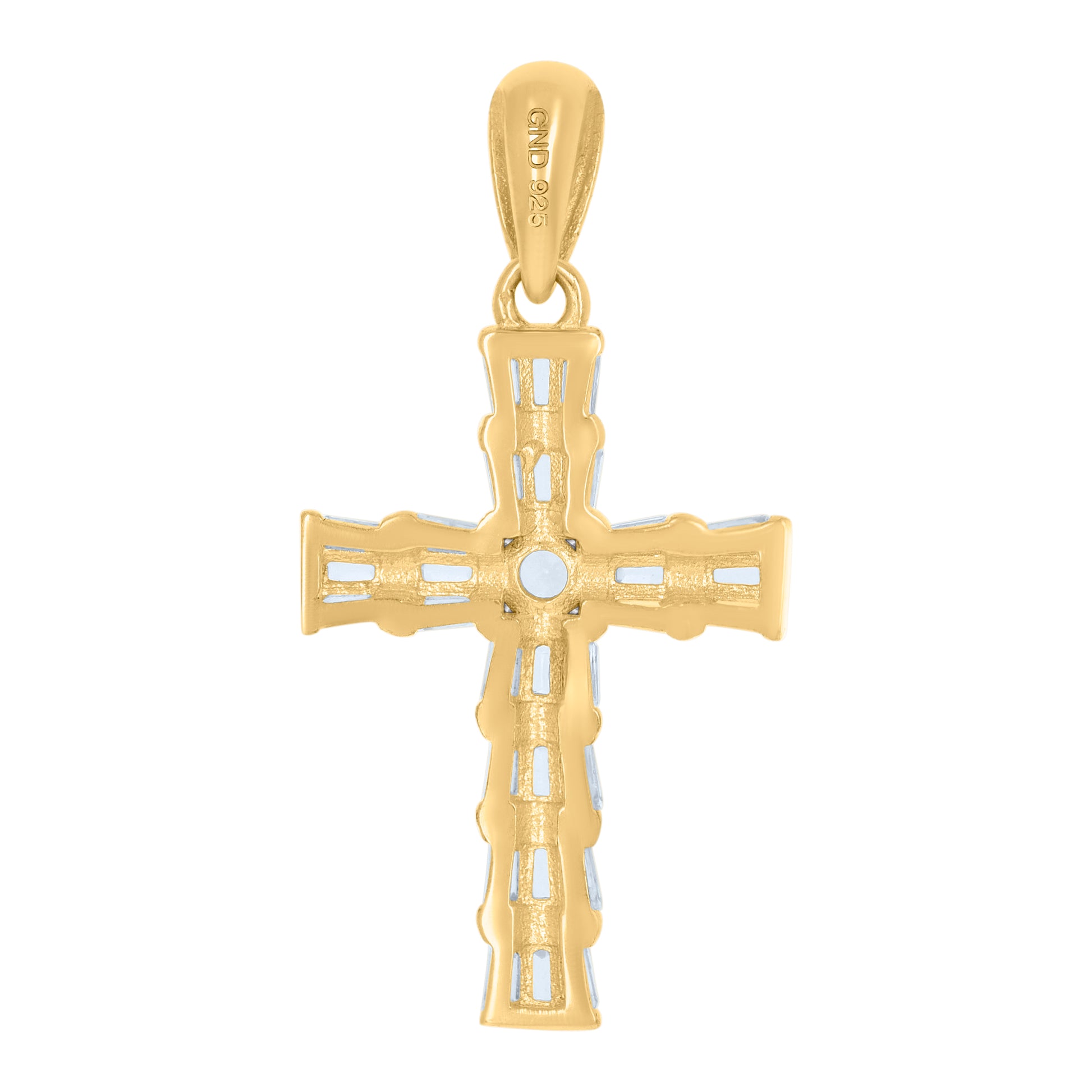 925 Sterling Silver Yellow-Tone Womens Baguette Round Cubic-Zirconia Cross Religious Charm Pendant