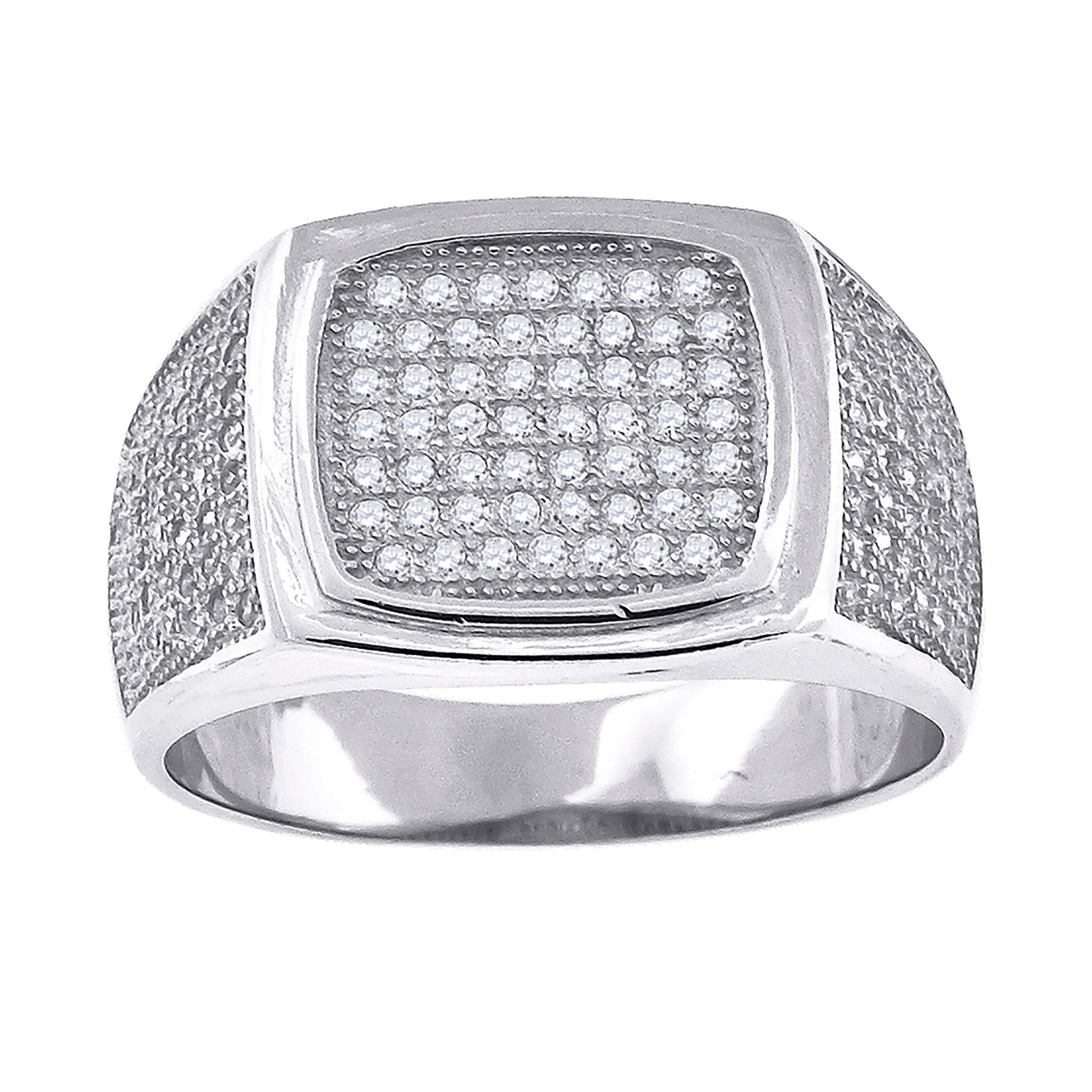 925 Sterling Silver Mens Cubic Zirconia Square Head Presidential Ring Size 9