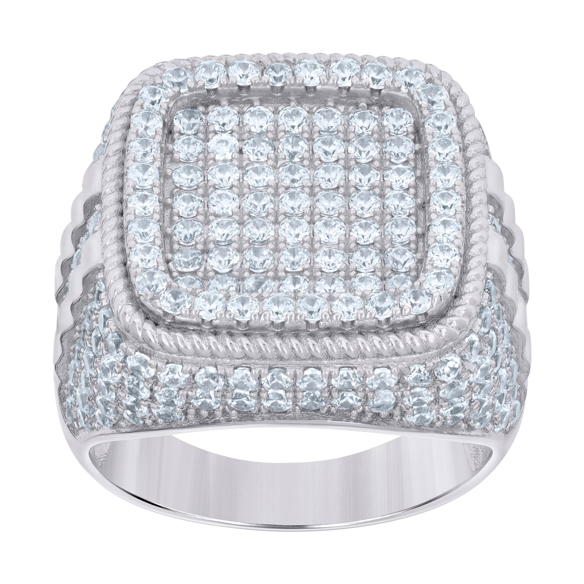 925 Sterling Silver Mens Cubic-Zirconia Square Head Fashion Ring Size 8