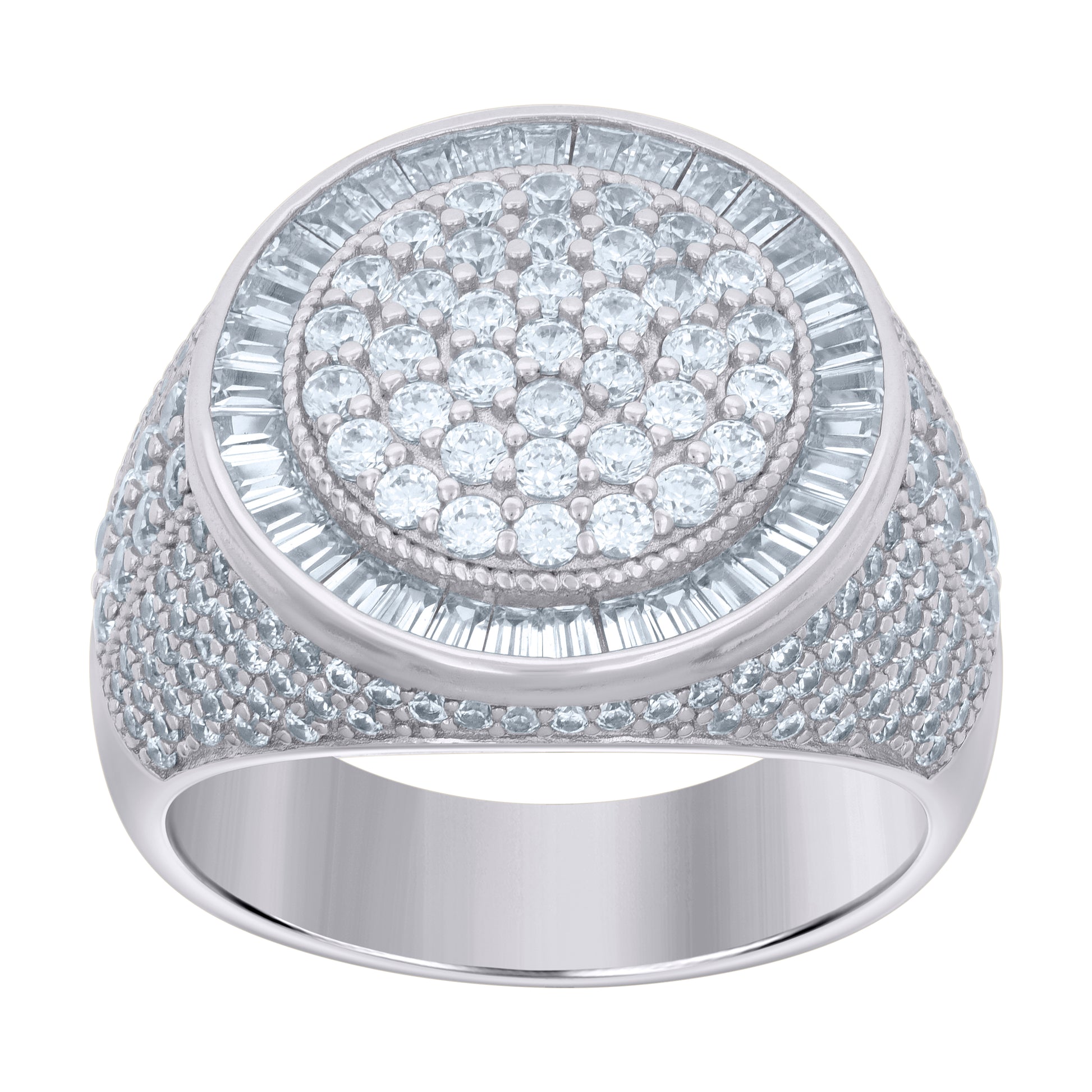 925 Sterling Silver Mens Baguette Round Cubic-Zirconia Fashion Ring Size 8