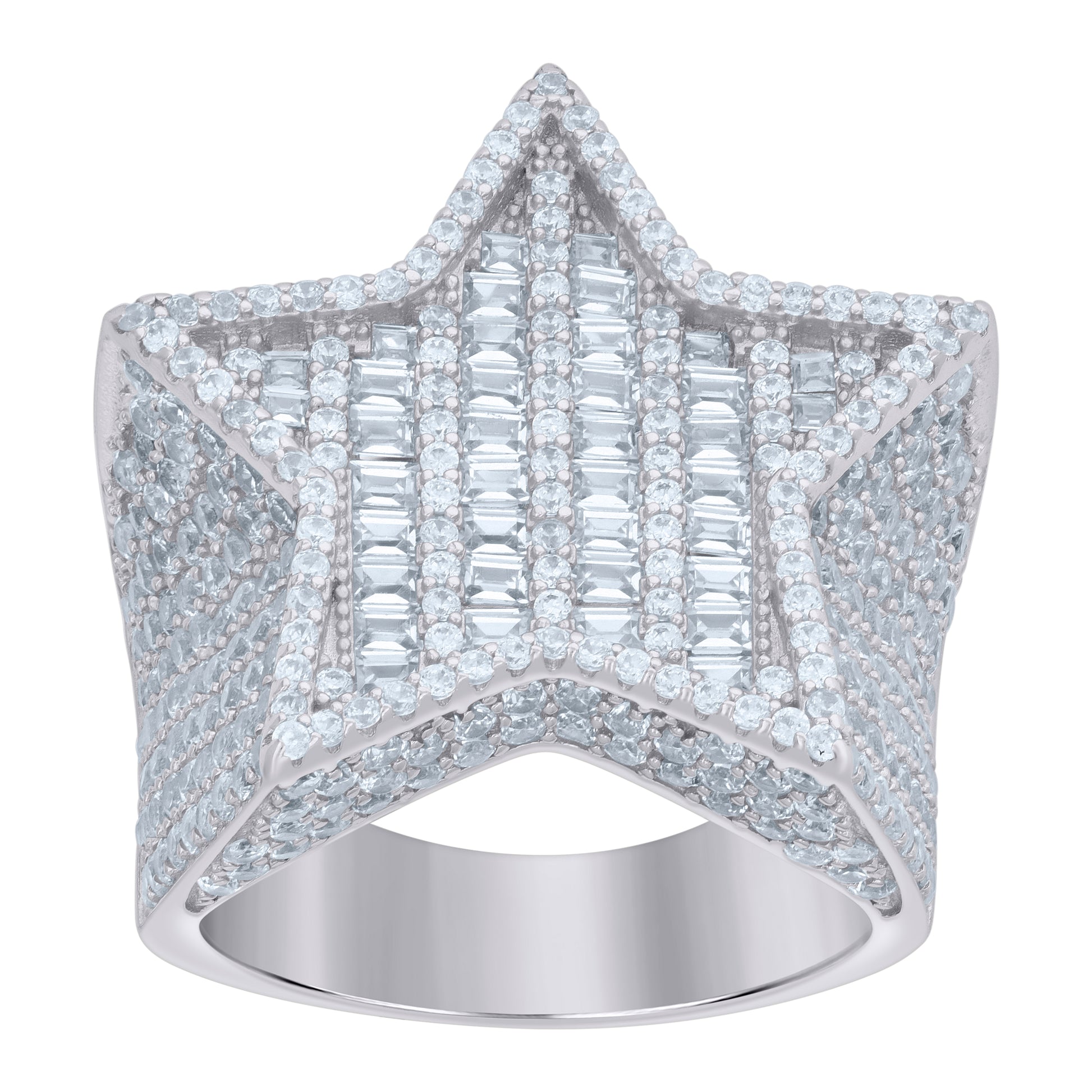 925 Sterling Silver Mens Baguette Round Cubic-Zirconia Star Fashion Ring Size 8