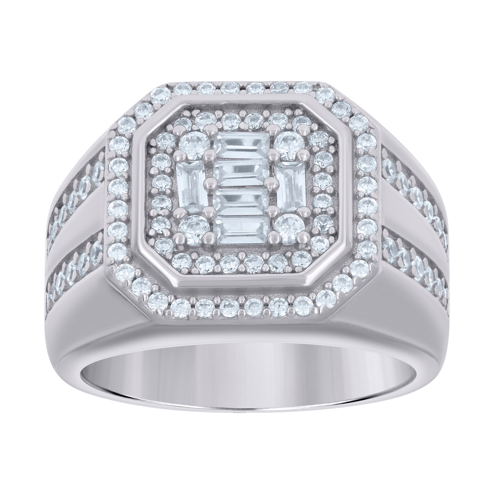 925 Sterling Silver Mens Baguette Round Cubic-Zirconia Octagon Head Fashion Ring Size 7