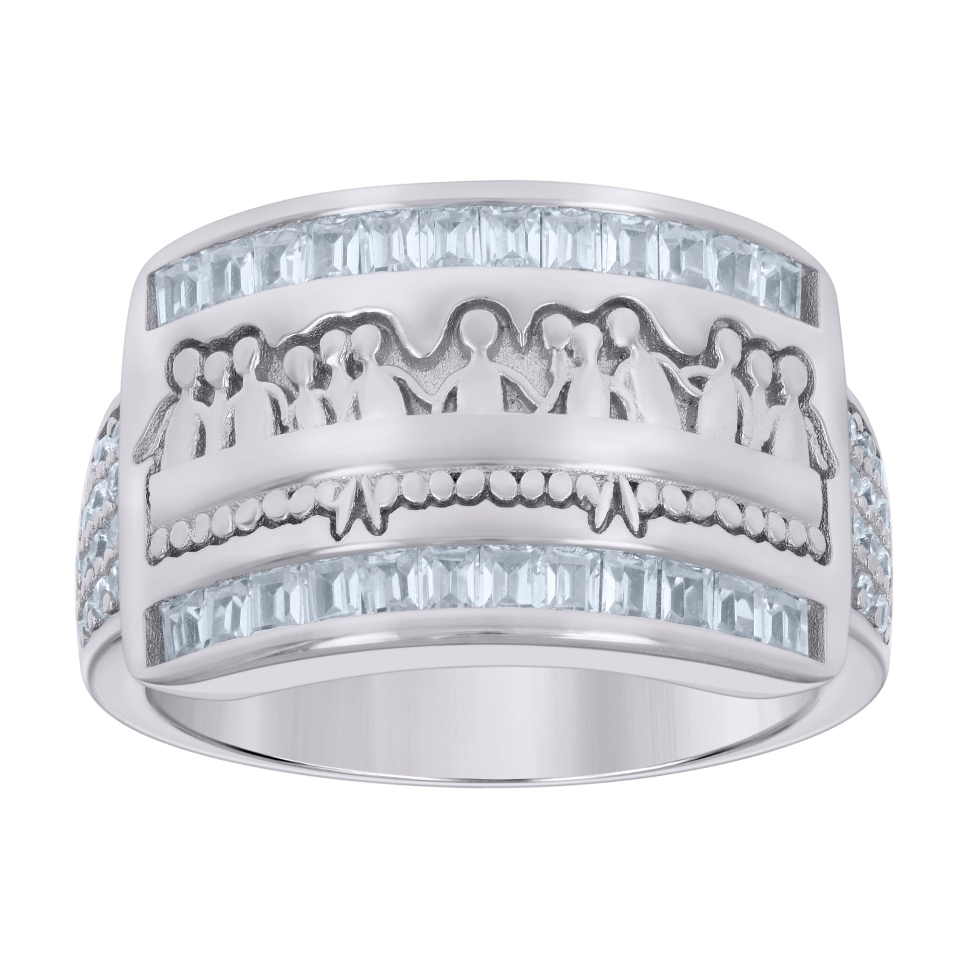 925 Sterling Silver Mens Baguette Round Cubic-Zirconia Last Supper Religious Ring